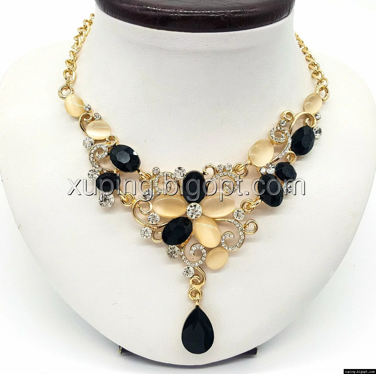 Подвеска Нарядная, с бежевыми и черными камнями, р.40-50