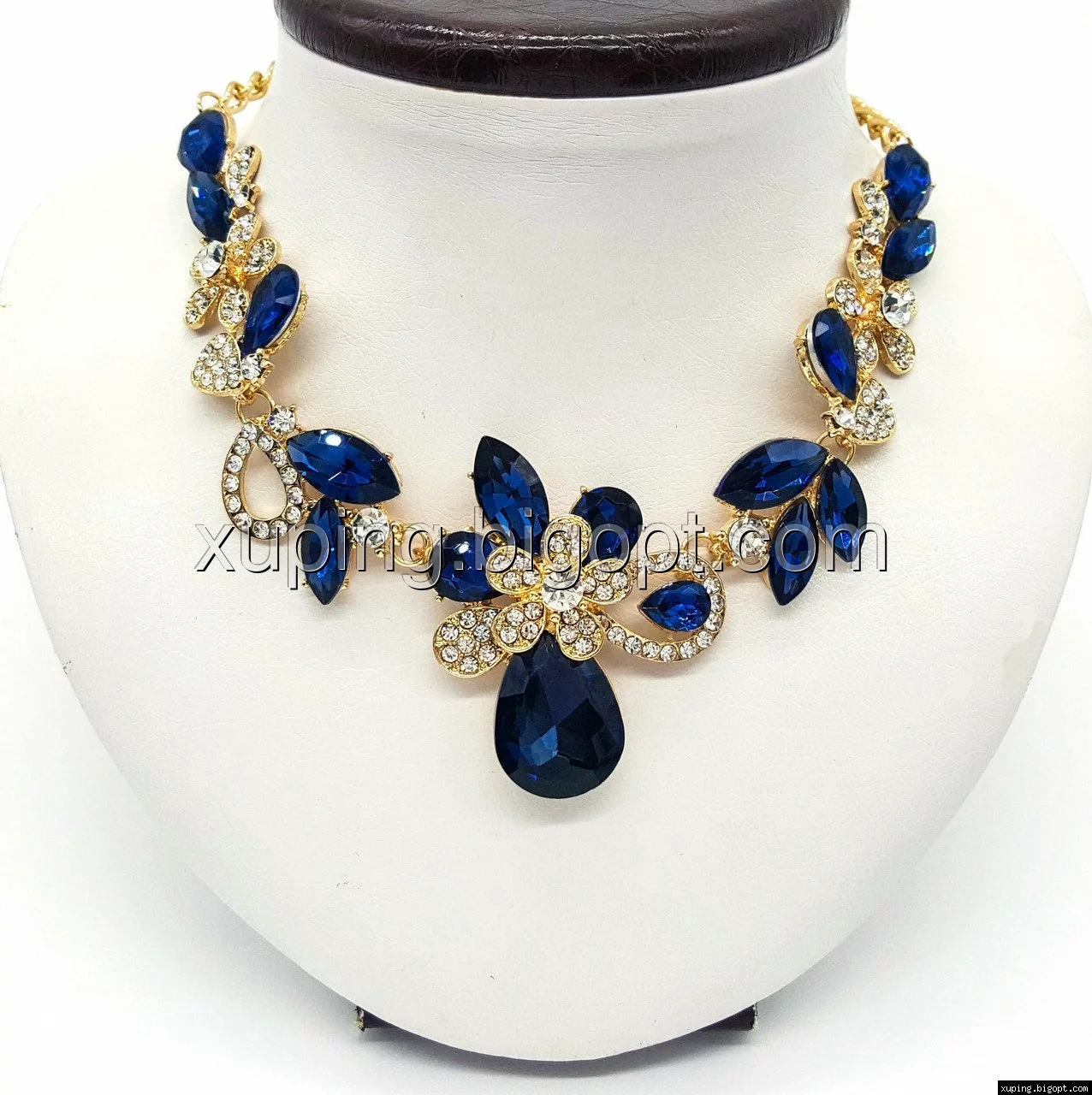 Подвеска нарядная, Три Цветка, с синими камнями, р.40-50