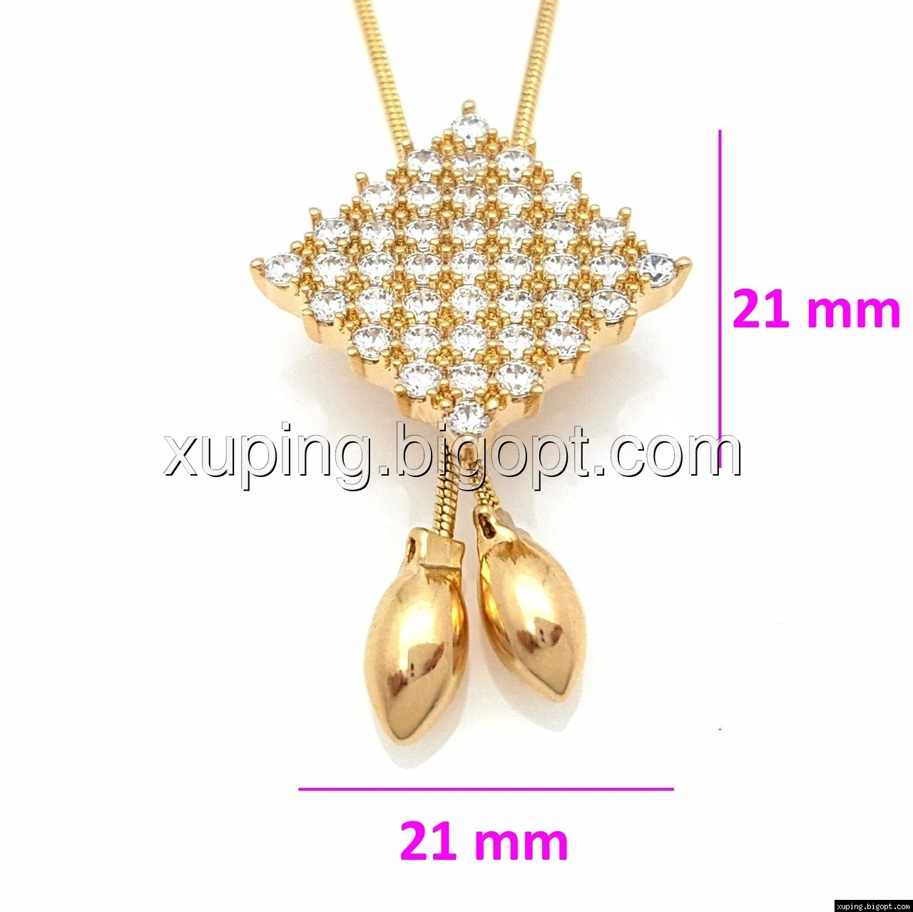 Подвеска позолоченная 73150, Элегантный Ромб, в россыпи камней, р.52-55, бижутерия Xuping