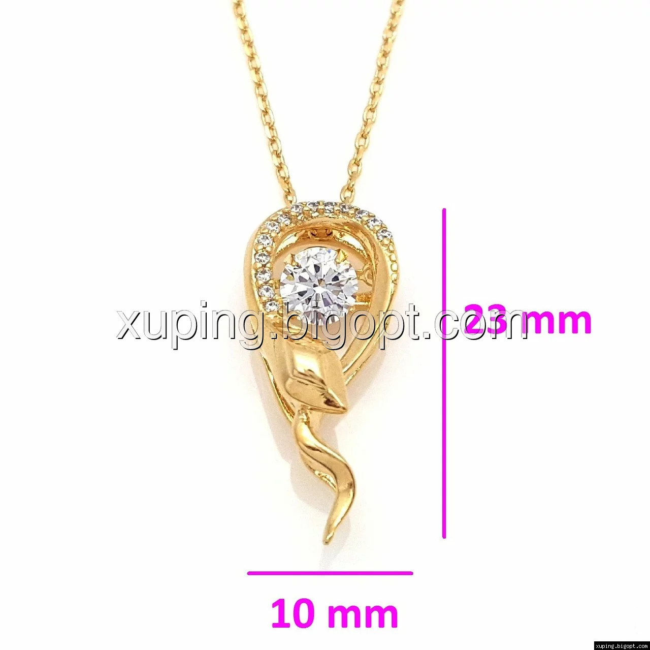 Подвеска позолоченная, Змея с россыпь циркония, р.42-45