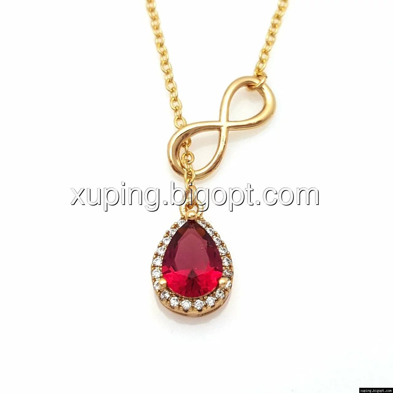 Подвеска позолота Xuping 73155, Капелька Росы с бесконечностью, вставка красный цирконий, р.50-56