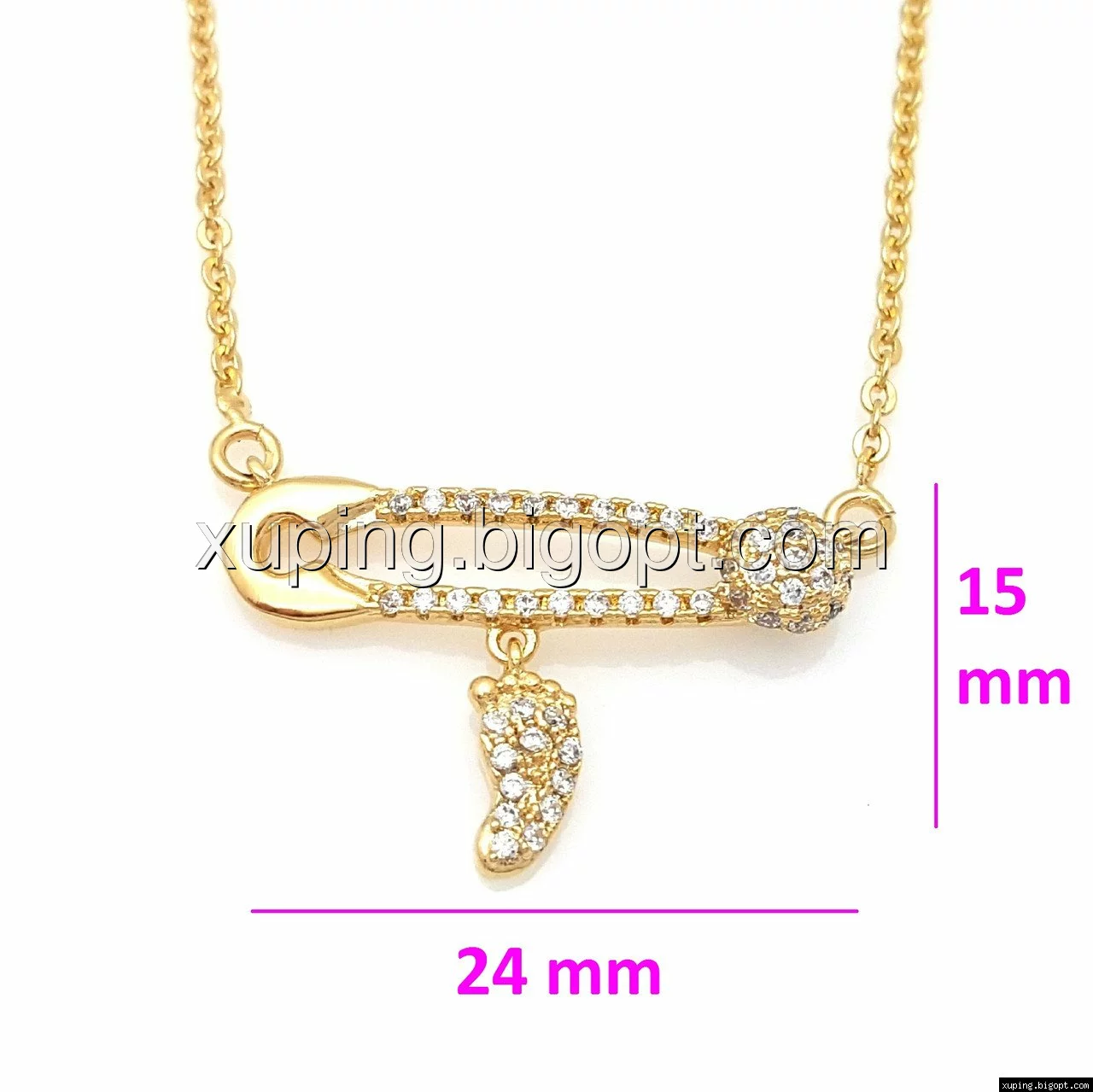 Подвеска позолота Xuping 73157, Булавка со Стопой, россыпь камней, р.45