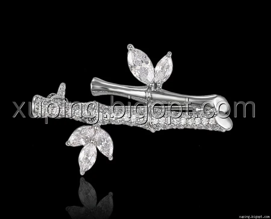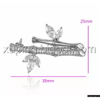 Брошь Бамбуковые палочки с россыпью циркония, родированная