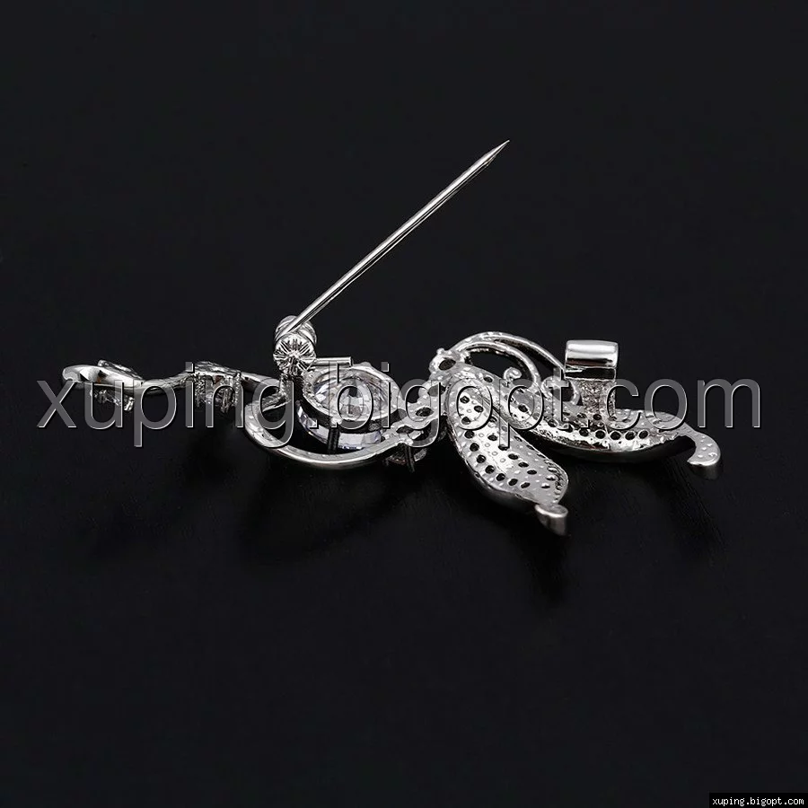 Брошь выполнена из медицинского сплава на основе титана с добавлением легирующих елементов, с целью улучшения каких-либо ее свойств, например коррозионной стойкости или прочности. Такой сплав не вызывает аллергии, не вступает в реакцию с потом человека, не меняет свои свойства под воздействием соленой воды и солнца. Поверхность цепочки покрыта родием чтобы придать ей ярко-белый цвет и дополнительно защитить от повреждений .