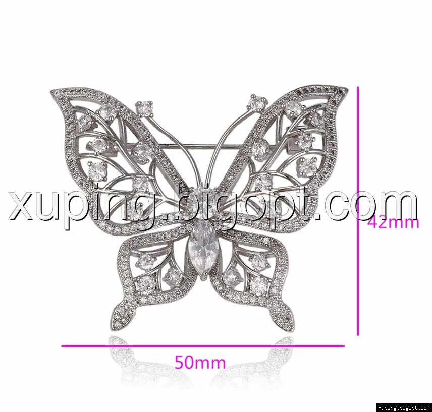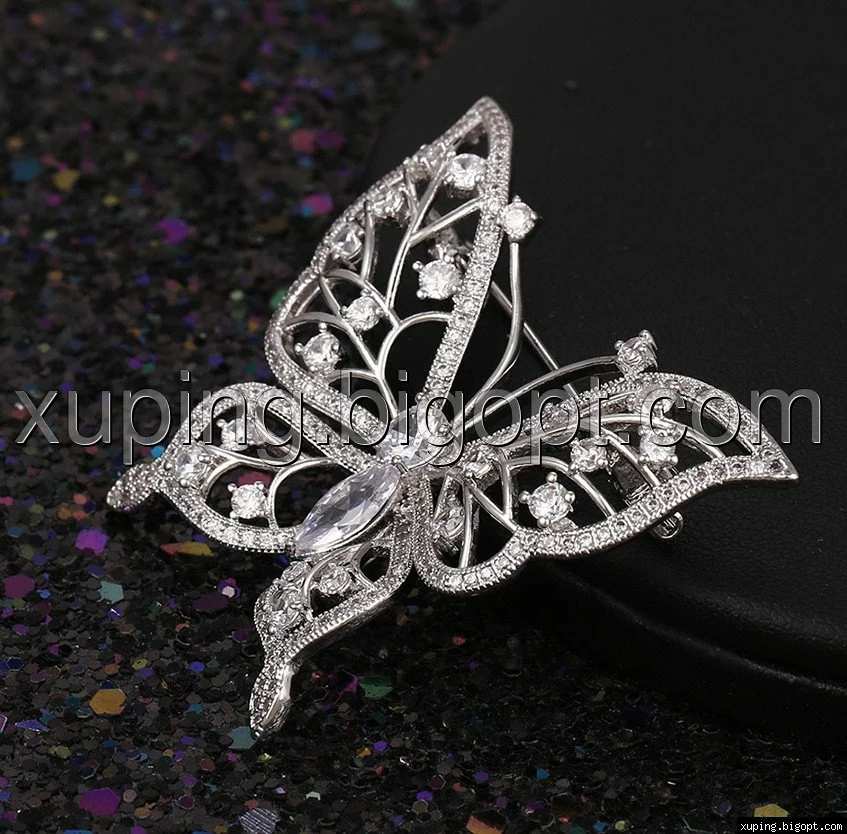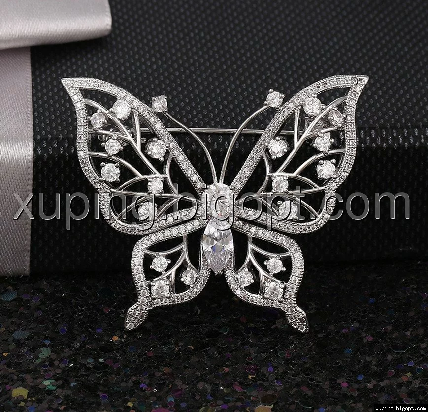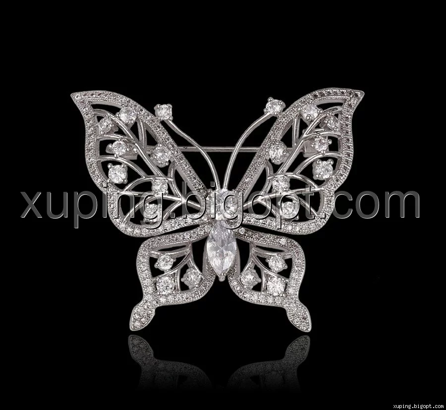 Брошь Бабочка с цирконием, родированная