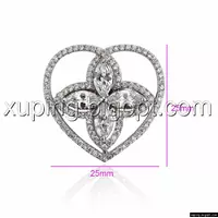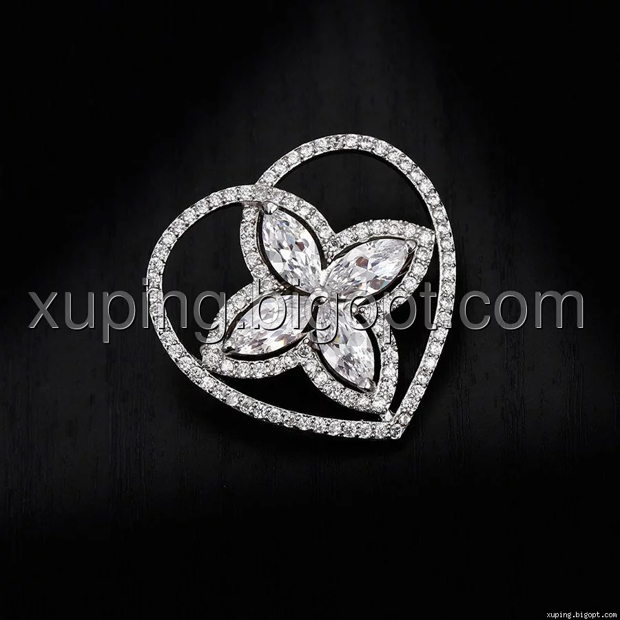 Брошь родий, Сердце с цветком, россыпь циркония
