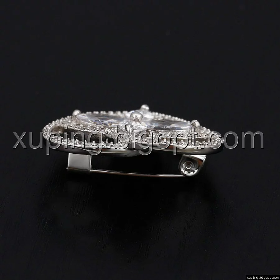 Брошь выполнена из медицинского сплава на основе титана с добавлением легирующих елементов, с целью улучшения каких-либо ее свойств, например коррозионной стойкости или прочности. Такой сплав не вызывает аллергии, не вступает в реакцию с потом человека, не меняет свои свойства под воздействием соленой воды и солнца. Поверхность цепочки покрыта родием чтобы придать ей ярко-белый цвет и дополнительно защитить от повреждений .