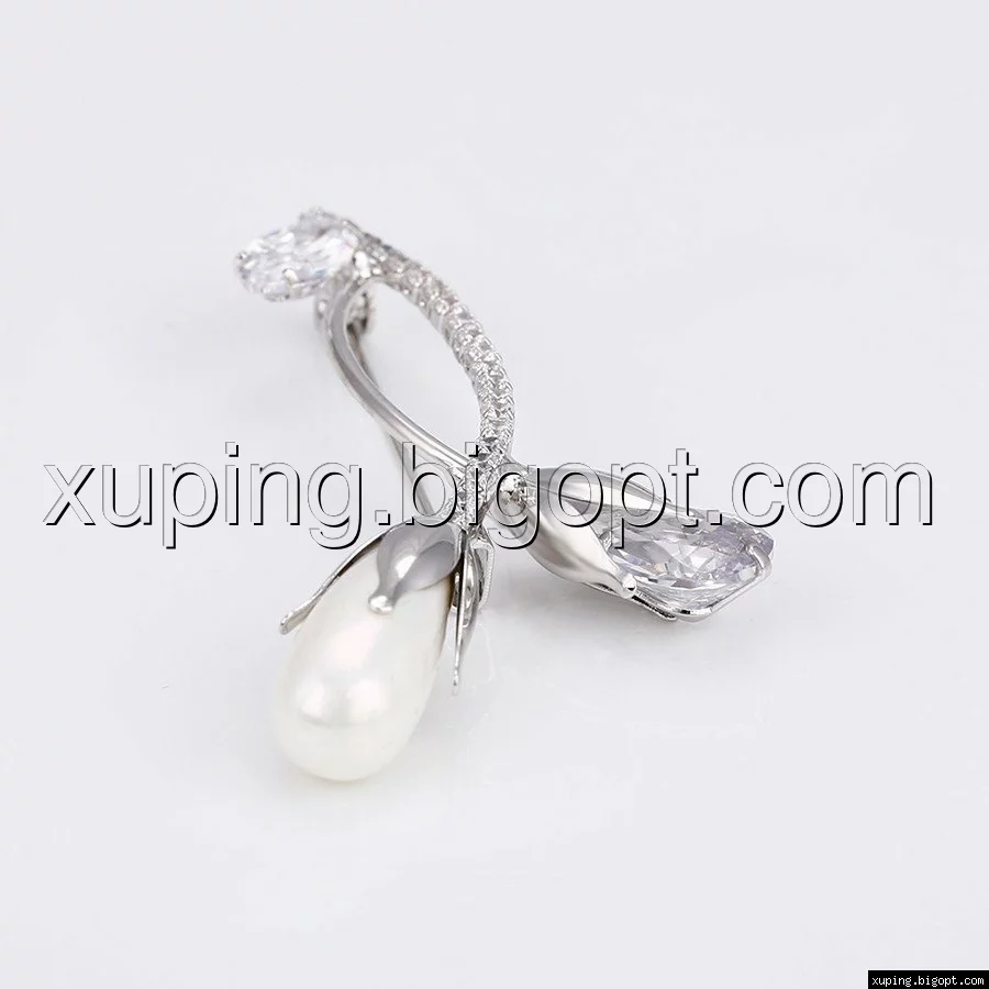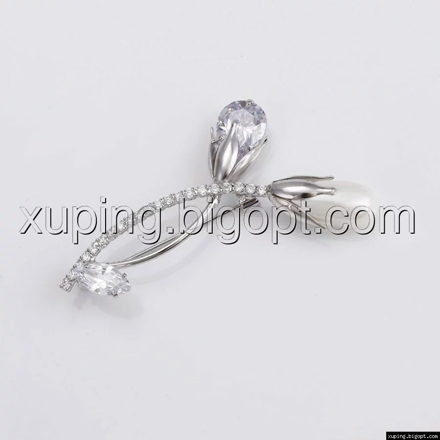 Брошь родированная, Два Цветка с камнями