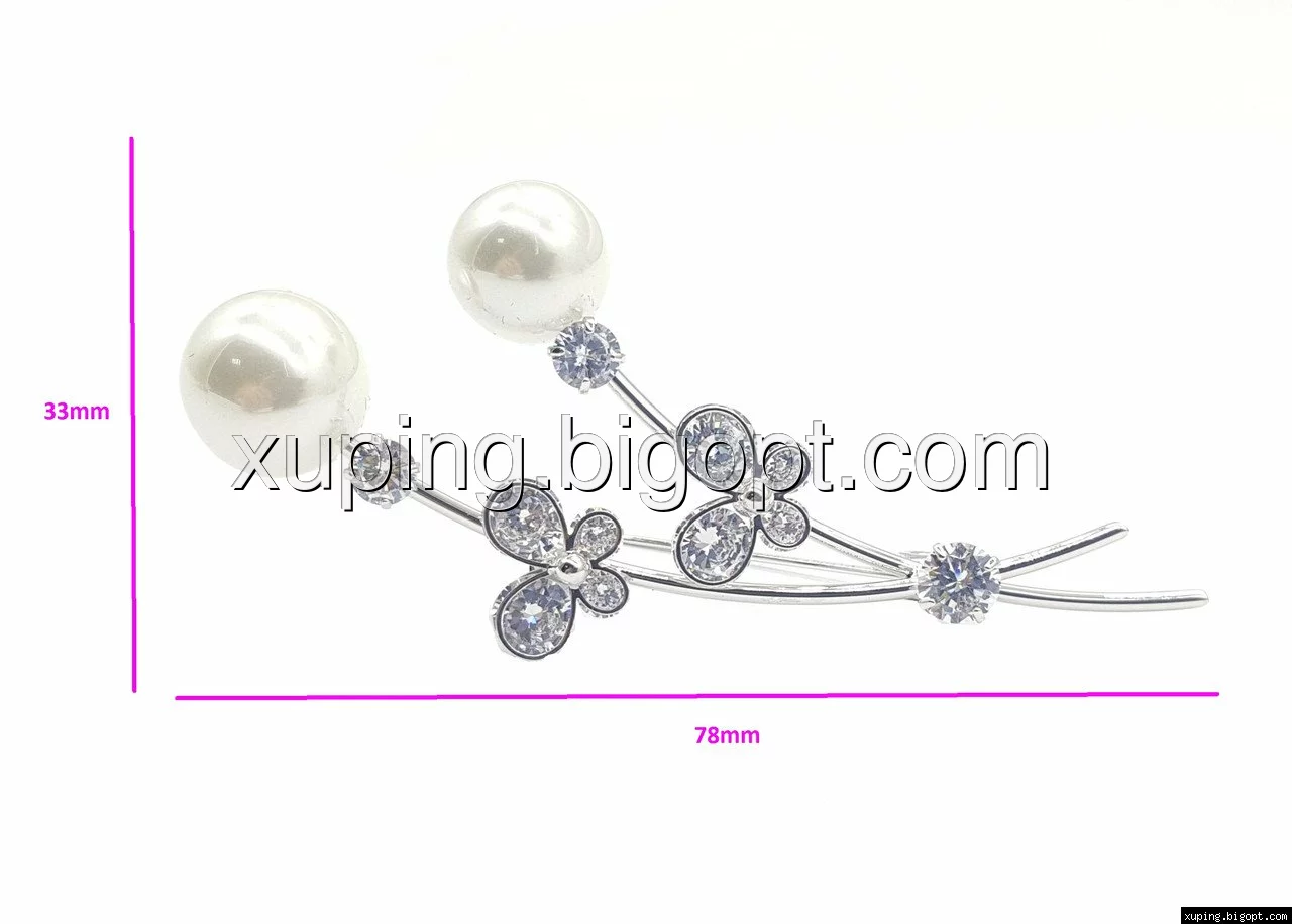 Брошь родированная, Две бабочки с жемчугом и цирконием