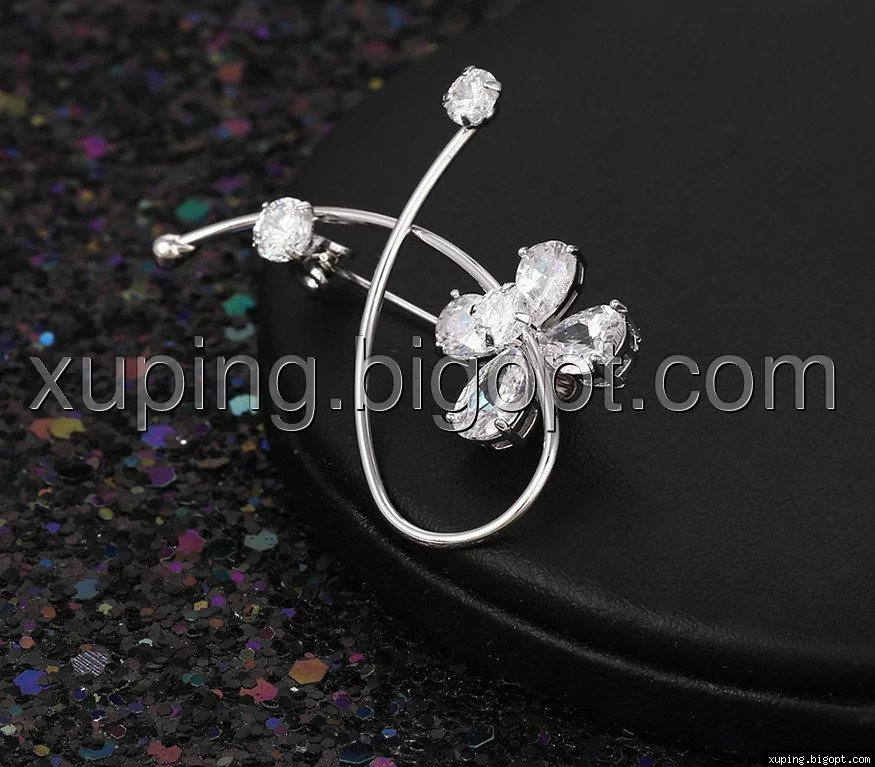 Брошь с цирконием, Нарядная, родированная