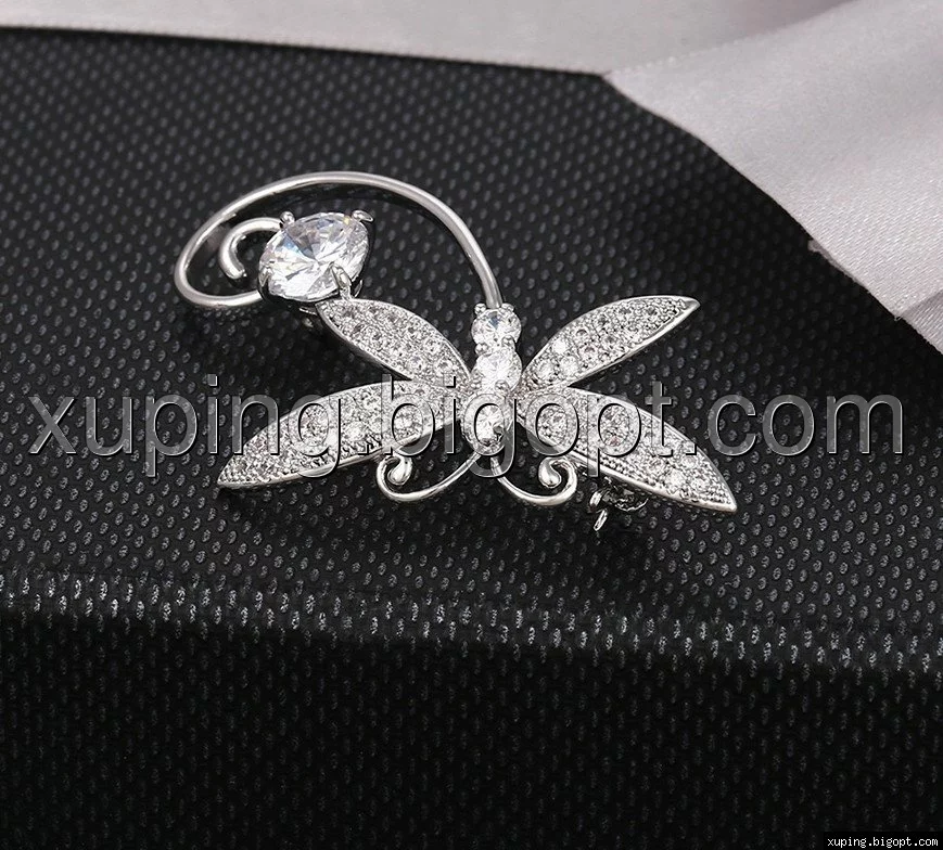 Брошь с россыпью циркония, Бабочка, родированная