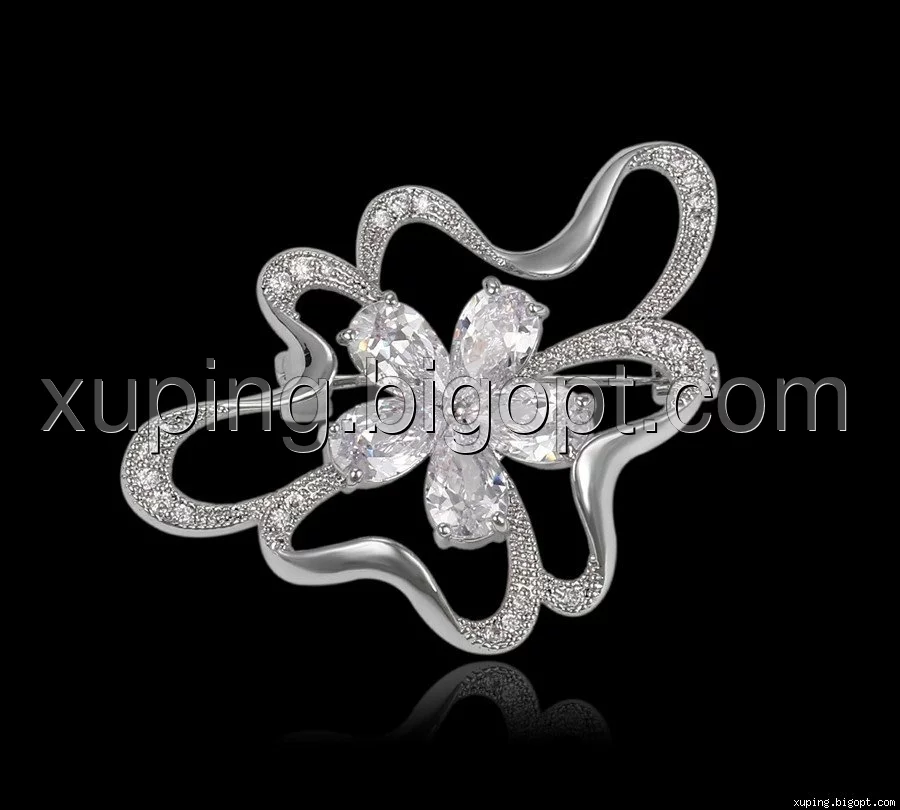 Брошь Цветок с россыпью циркония, родированная