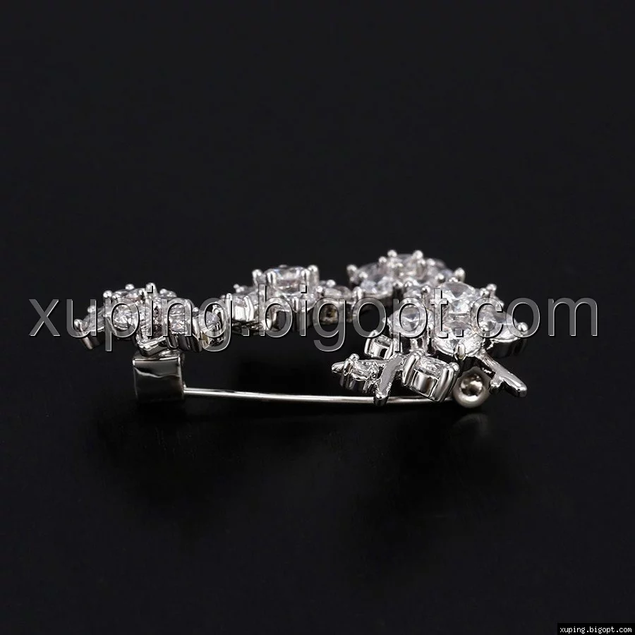 Брошка Веточка и Цветки, с цирконием, родий