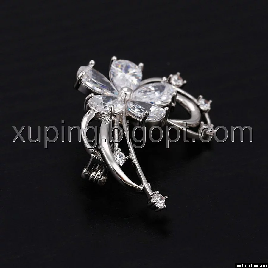 Брошка Родированная, Цветочек с крупным цирконием