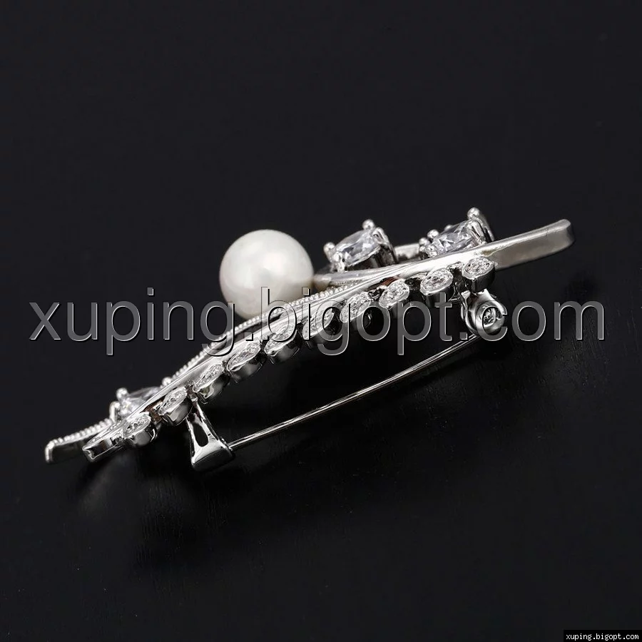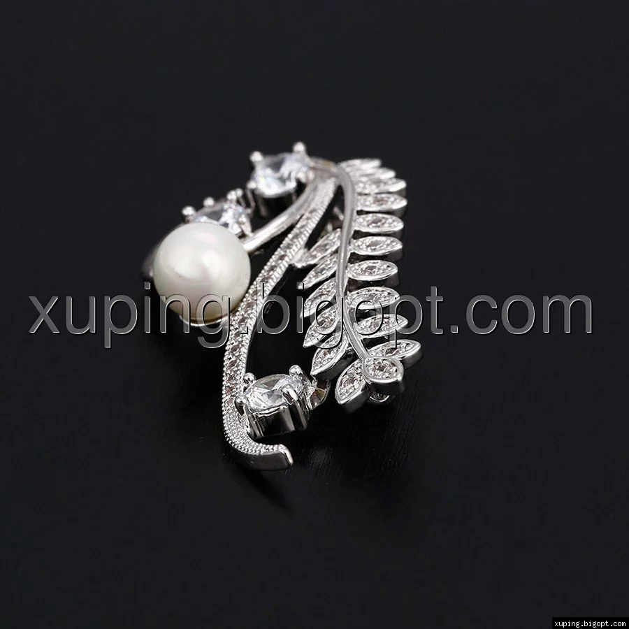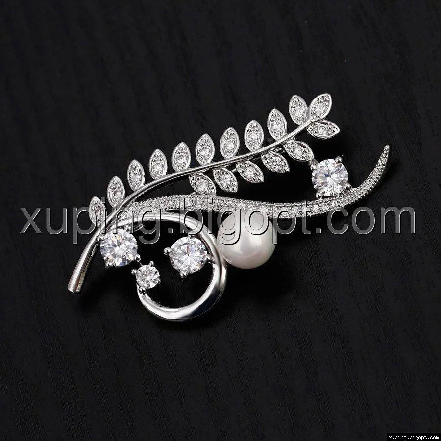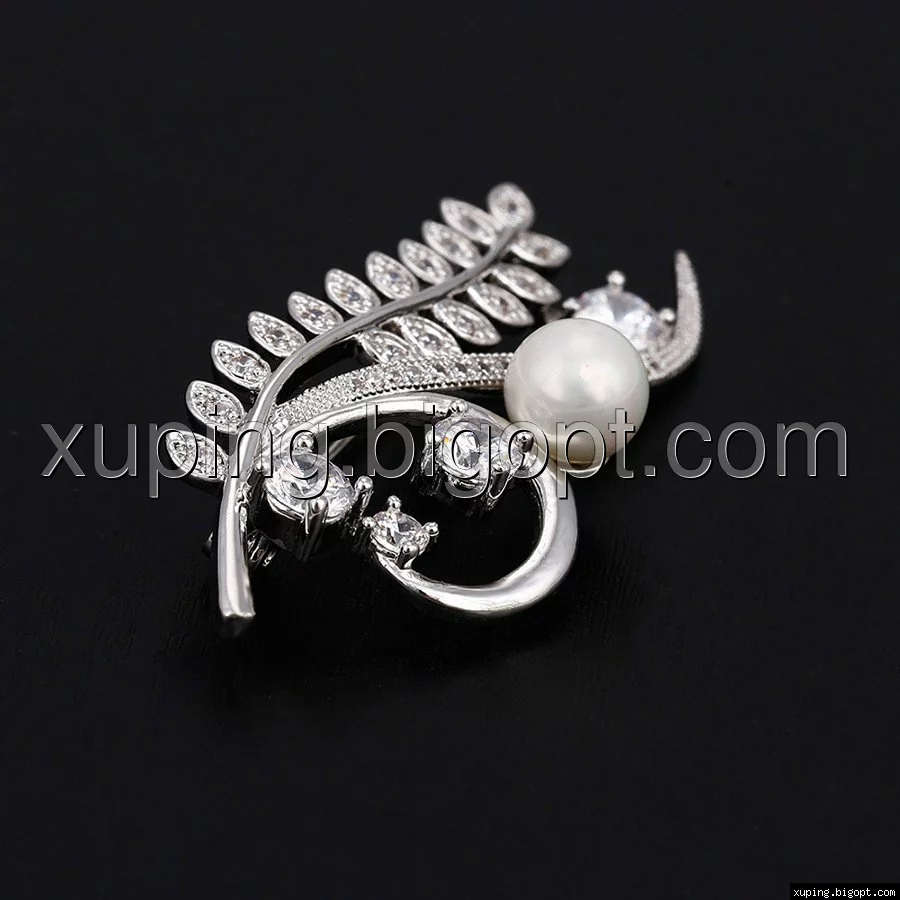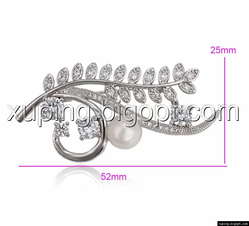 Брошка родированная, Веточка с россыпью циркония, Xuping