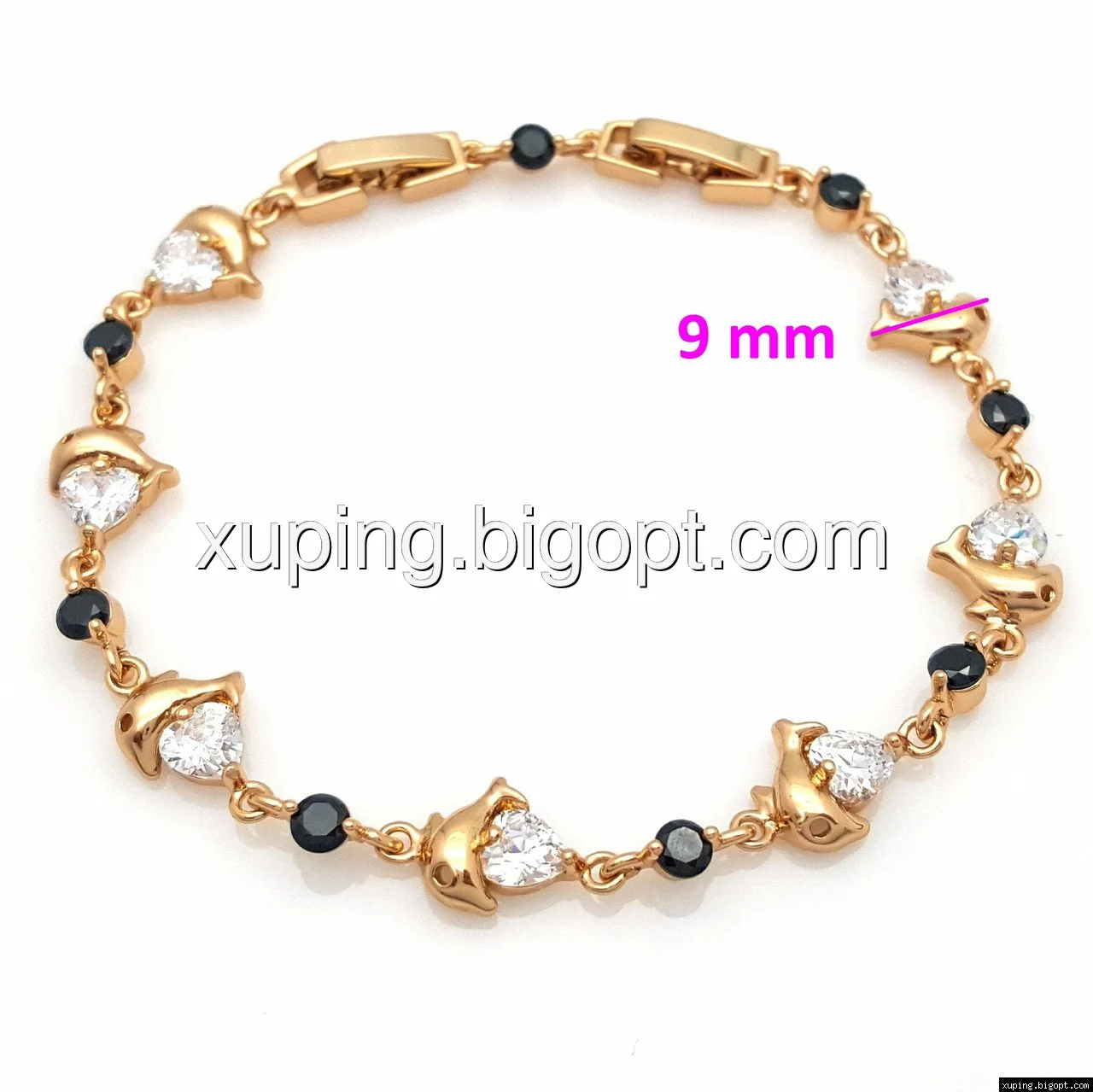 Браслет выполнен из медицинского сплава, который  изготовляется на основе латуни. Сверху бижутерия покрыта позолотой  для того чтобы придать ей насыщенный цвет, яркий блеск и максимальное сходство с золотом. Кроме того, в качестве декора мастера используют цирконий, который крепится при помощи клапанов. Как известно этот камень широко применяется в ювелирном искусстве, так как он обладает восхитительным блеском и прочностью. Данная бижутерия представлена заводом-производителем марки «Xuping» – все изделия оригинальны и имеют одинаково высокое качество.