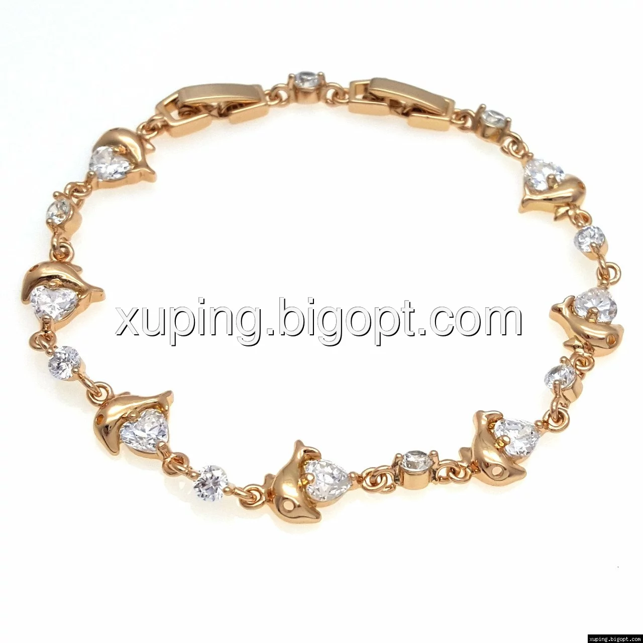 Браслет Дельфины с камнями, р.17, р.19,5, позолота Xuping
