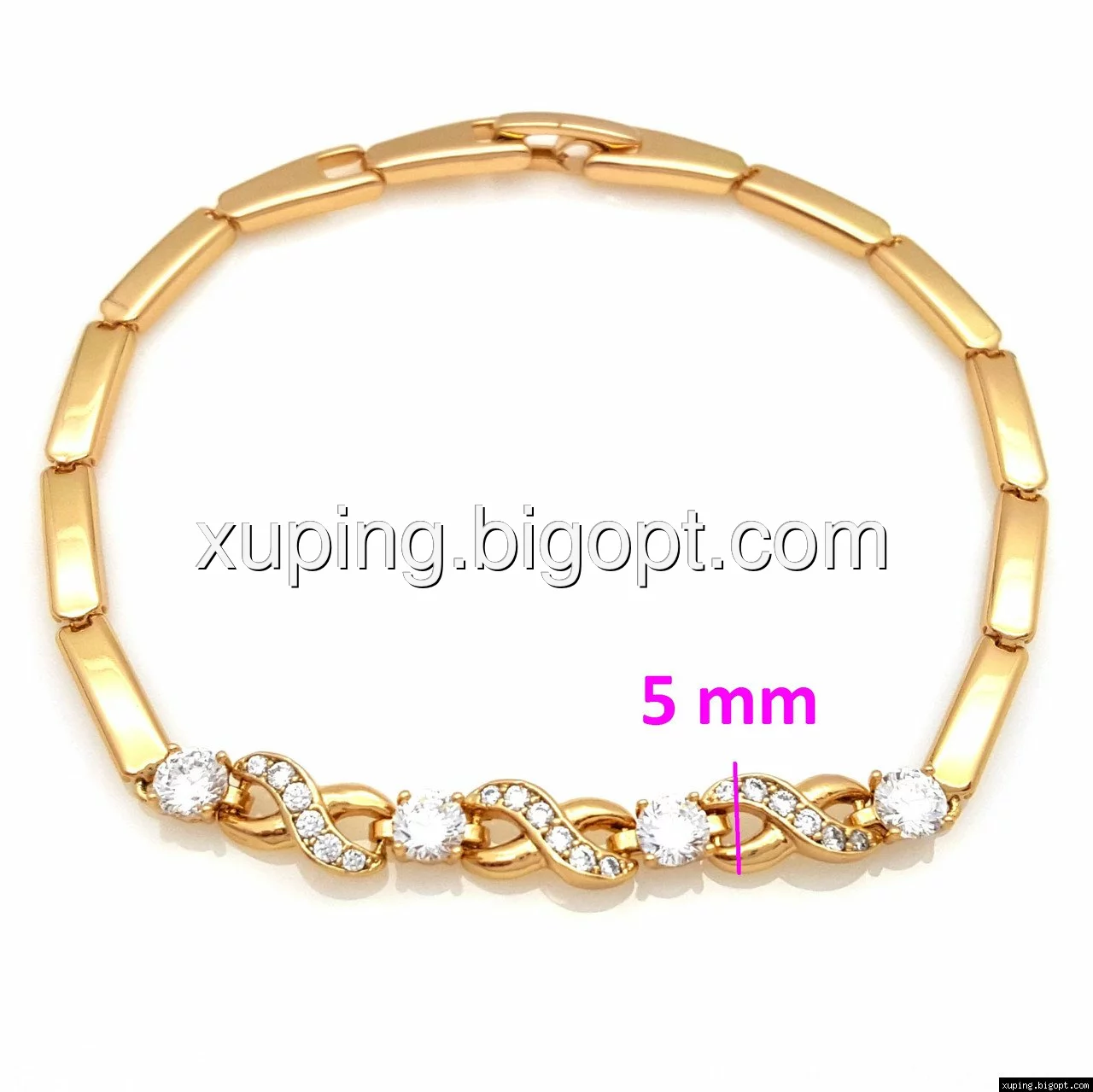 Браслет Бесконечность с цирконием, р.17, р.18, позолота Xuping