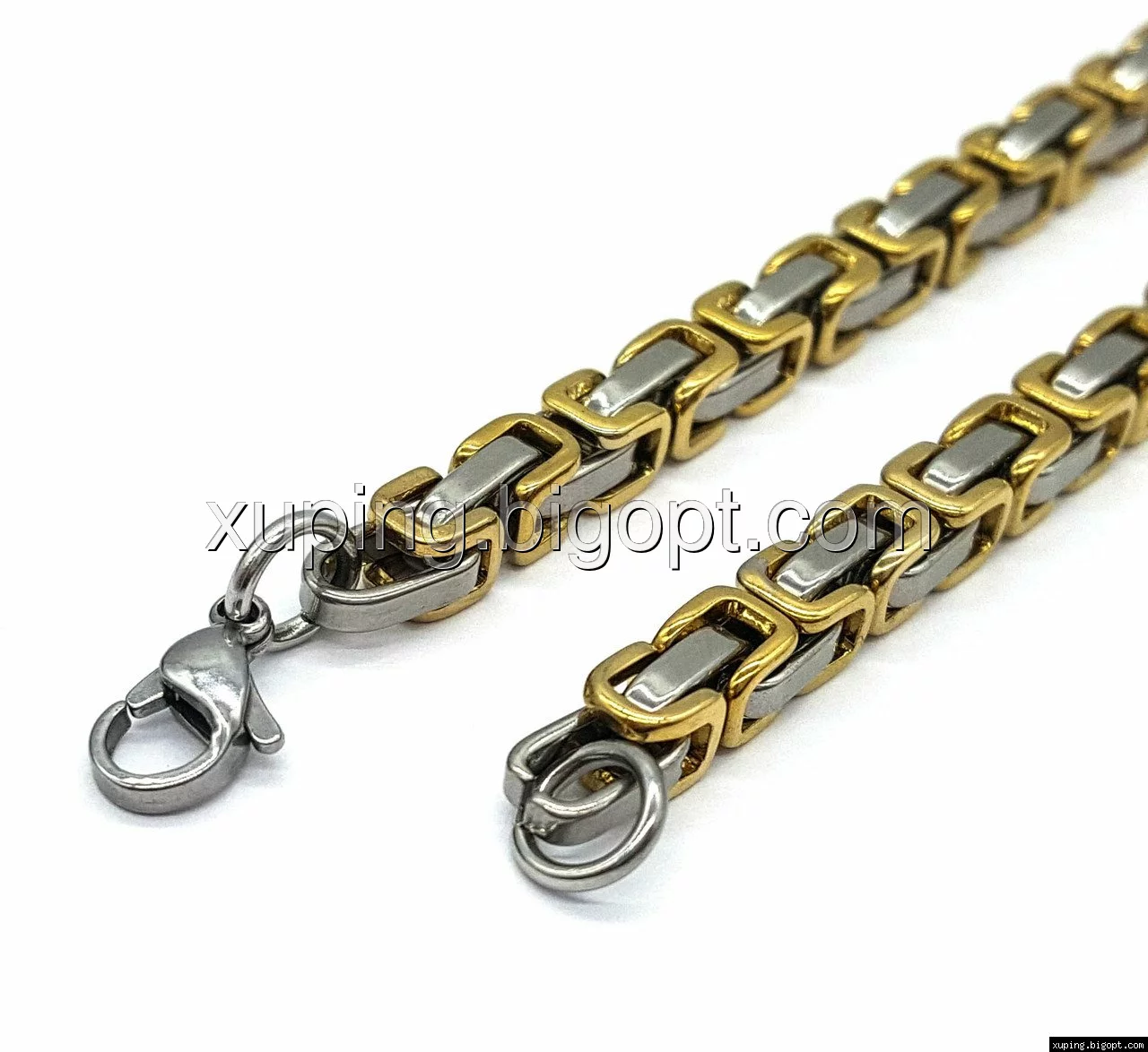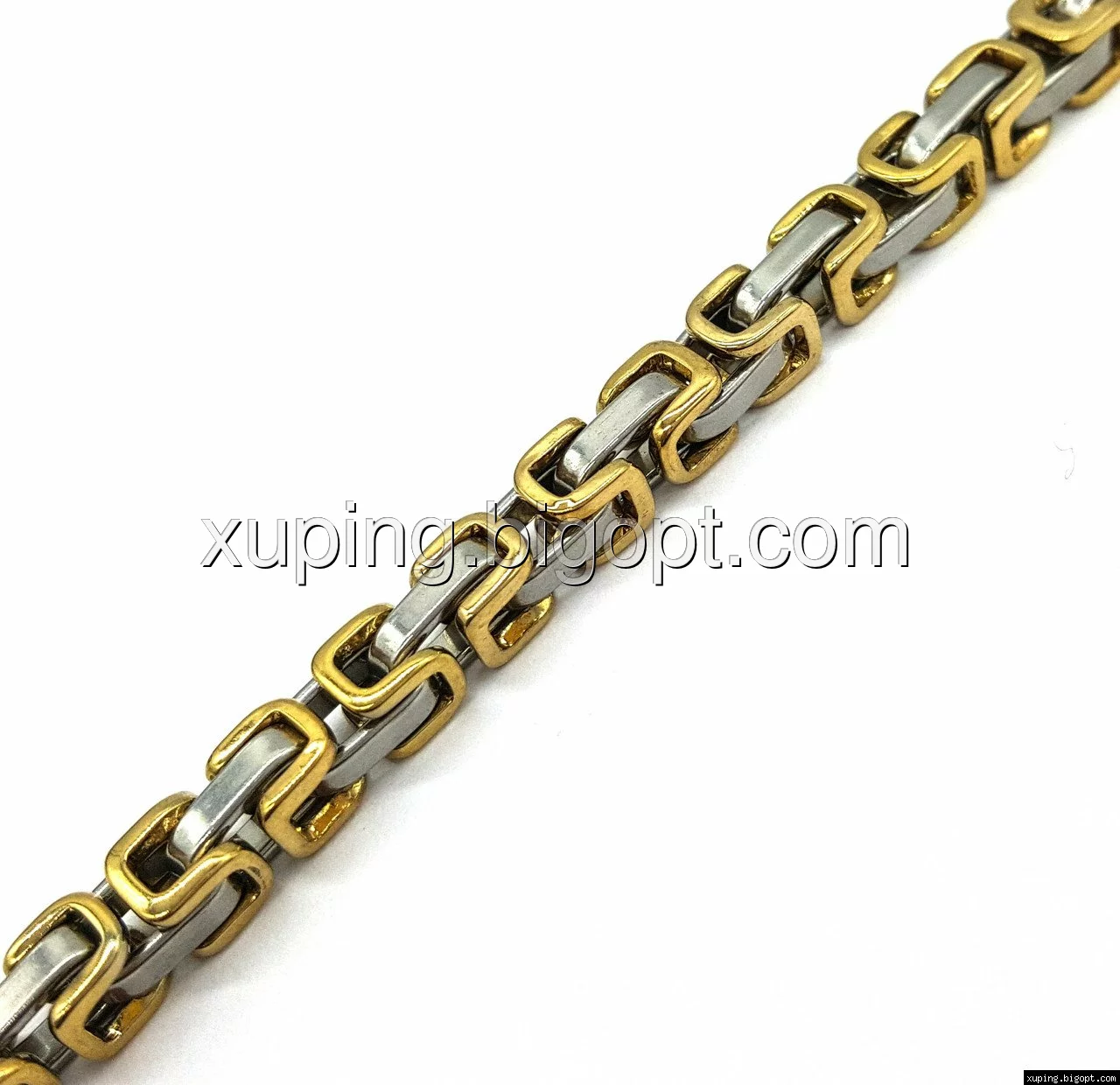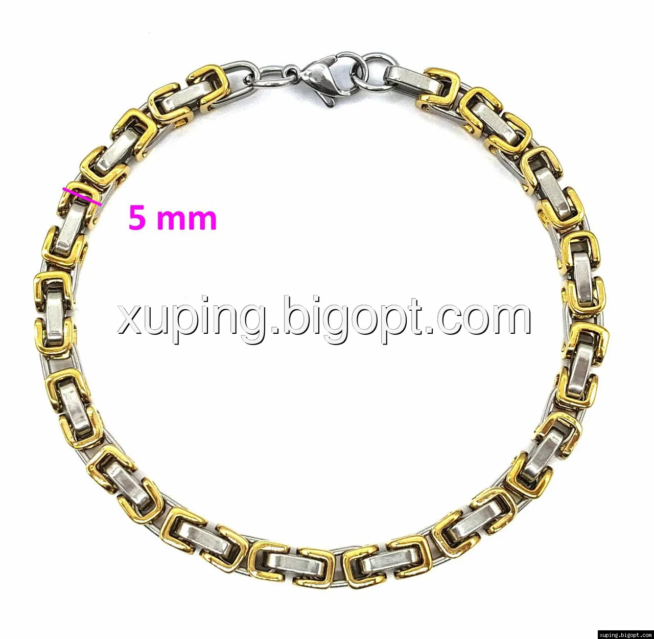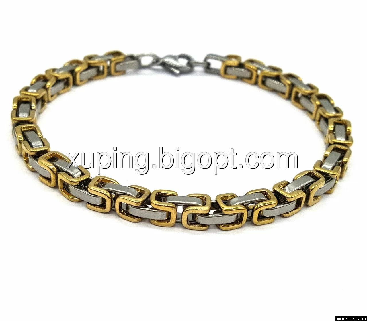 Браслет выполнен с нержавеющей стали с покрытием под золото.