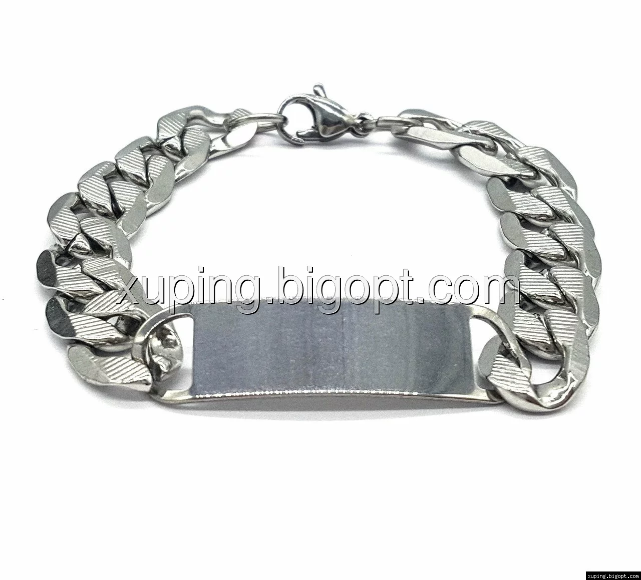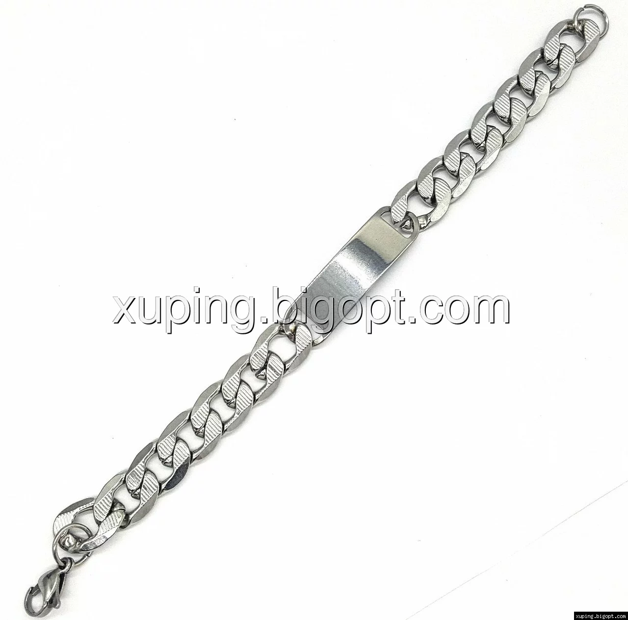 Браслет из нержавейки, Массивная цепочка с узором и пластинкой, р.20,5