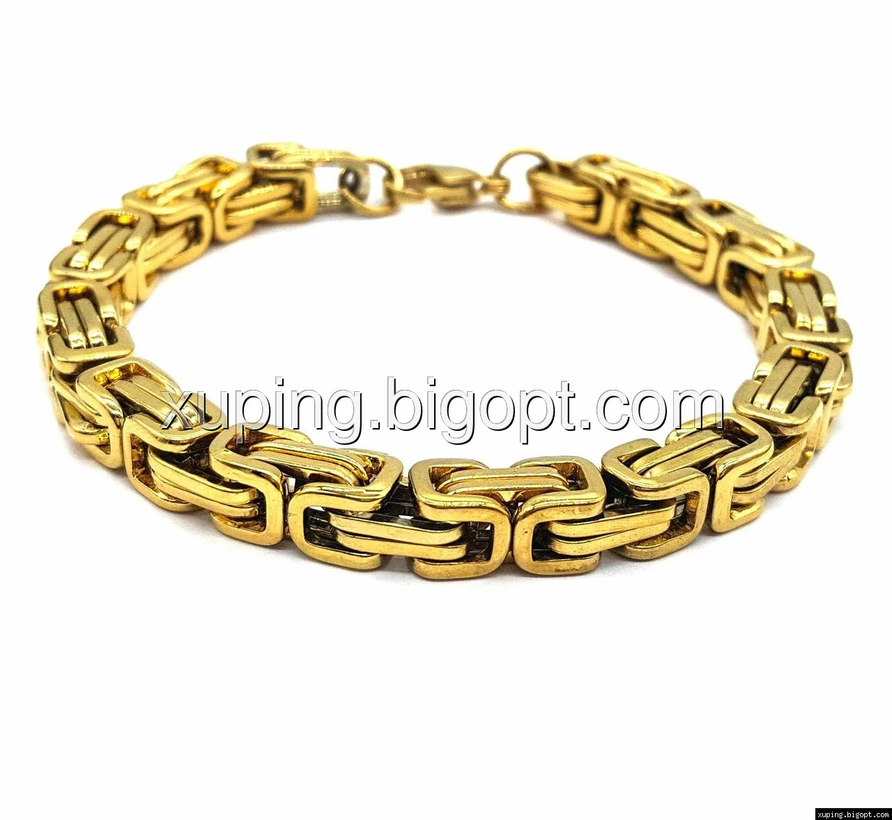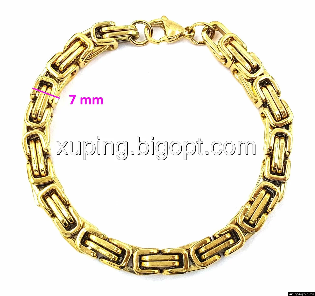 Браслет выполнен с нержавеющей стали с покрытием под золото.