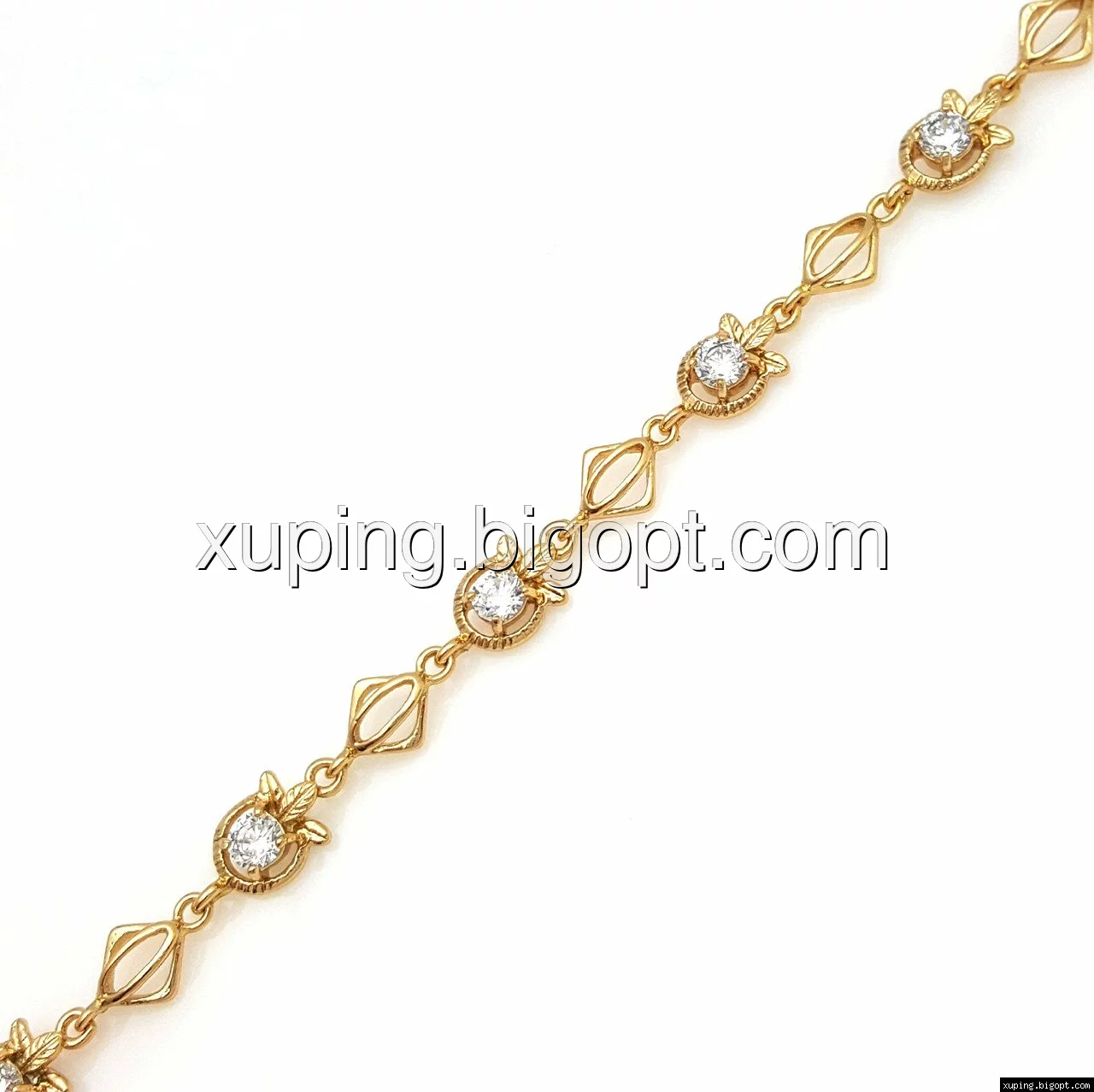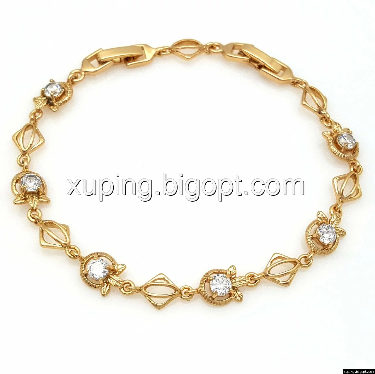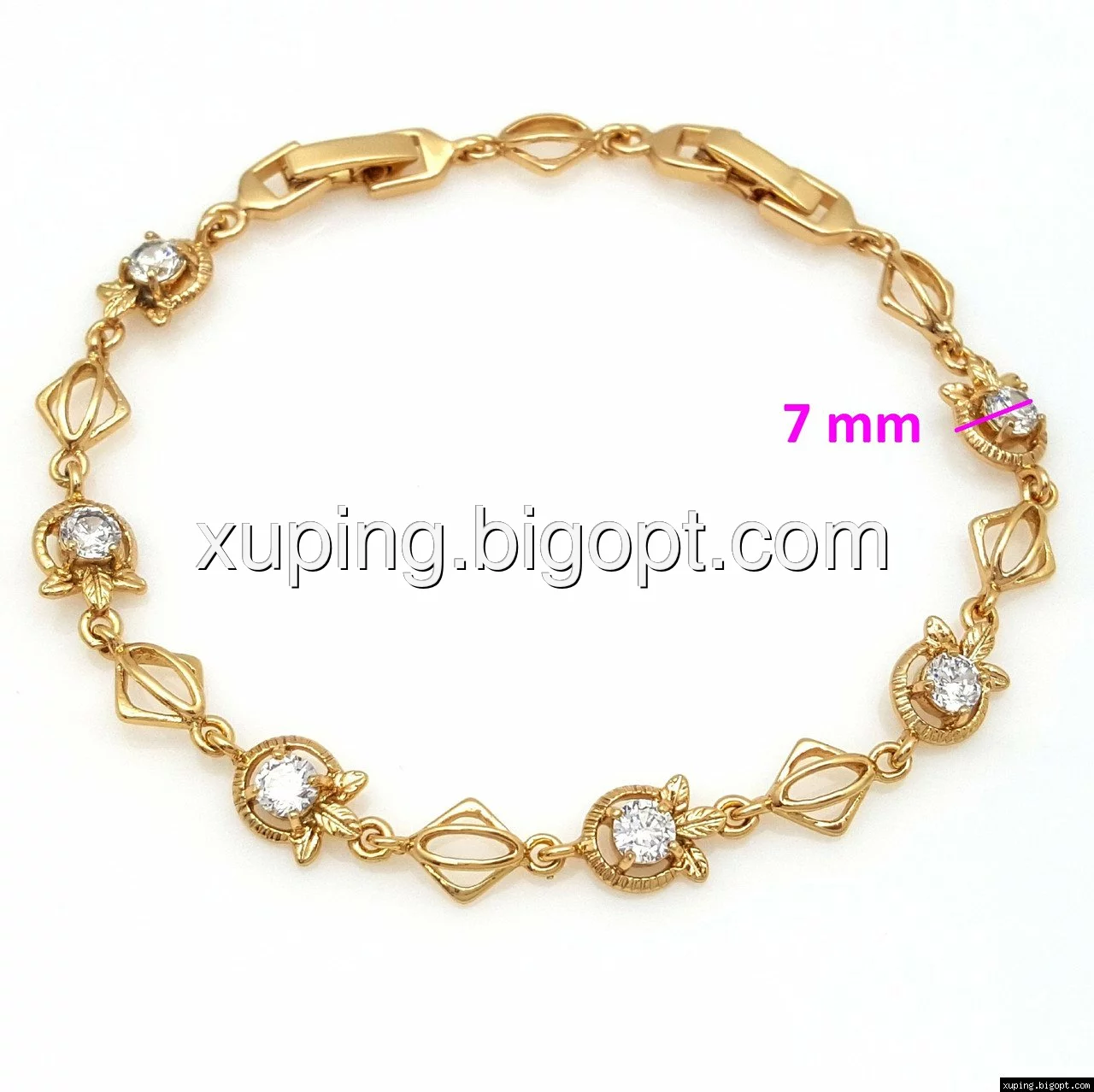 Браслет выполнен из медицинского сплава, который  изготовляется на основе латуни. Сверху бижутерия покрыта позолотой  для того чтобы придать ей насыщенный цвет, яркий блеск и максимальное сходство с золотом. Кроме того, в качестве декора мастера используют цирконий, который крепится при помощи клапанов. Как известно этот камень широко применяется в ювелирном искусстве, так как он обладает восхитительным блеском и прочностью. Данная бижутерия представлена заводом-производителем марки «Xuping» – все изделия оригинальны и имеют одинаково высокое качество.