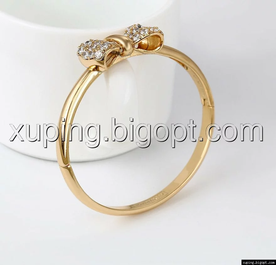 Браслет Бантик с цирконием, позолоченный