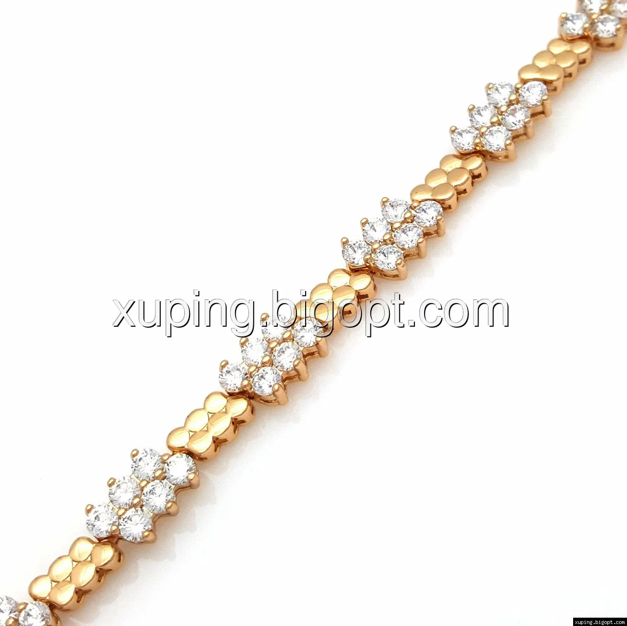 Браслет выполнен из медицинского сплава, который  изготовляется на основе латуни. Сверху бижутерия покрыта позолотой  для того чтобы придать ей насыщенный цвет, яркий блеск и максимальное сходство с золотом. Кроме того, в качестве декора мастера используют цирконий, который крепится при помощи клапанов. Как известно этот камень широко применяется в ювелирном искусстве, так как он обладает восхитительным блеском и прочностью. Данная бижутерия представлена заводом-производителем марки «Xuping» – все изделия оригинальны и имеют одинаково высокое качество.