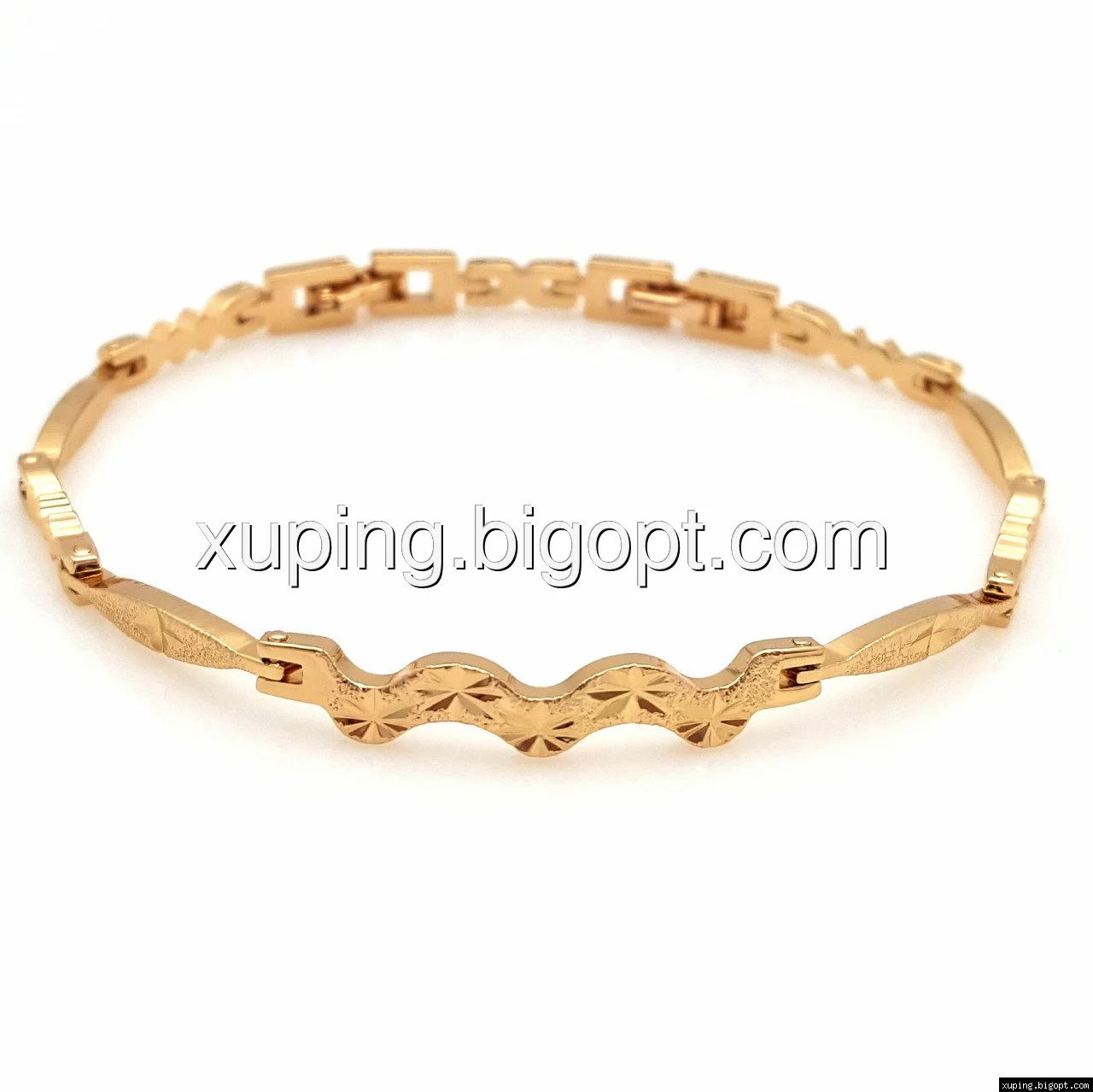 Браслет выполнен из медицинского сплава, который  изготовляется на основе латуни. Сверху бижутерия покрыта позолотой  для того чтобы придать ей насыщенный цвет, яркий блеск и максимальное сходство с золотом. Кроме того, в качестве декора мастера используют цирконий, который крепится при помощи клапанов. Как известно этот камень широко применяется в ювелирном искусстве, так как он обладает восхитительным блеском и прочностью. Данная бижутерия представлена заводом-производителем марки «Xuping» – все изделия оригинальны и имеют одинаково высокое качество.