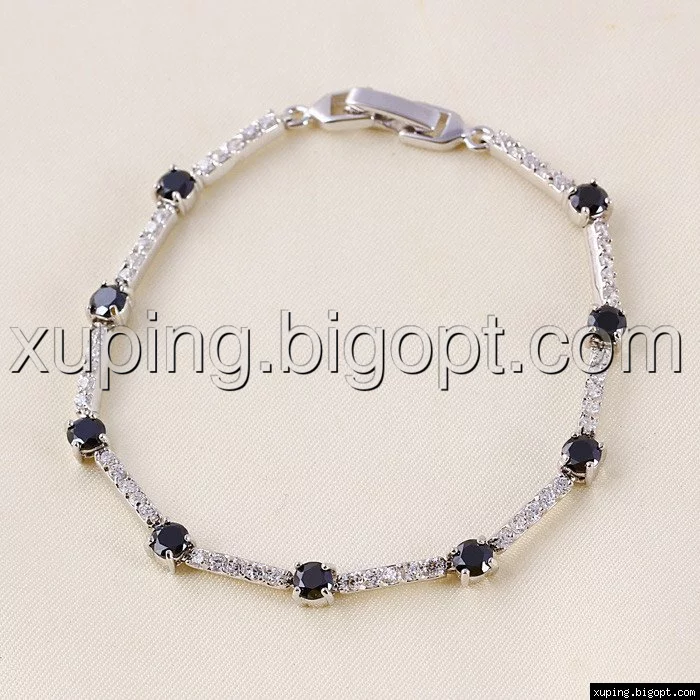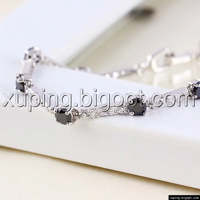 Браслет Дорожка Черная, родий р.18,5