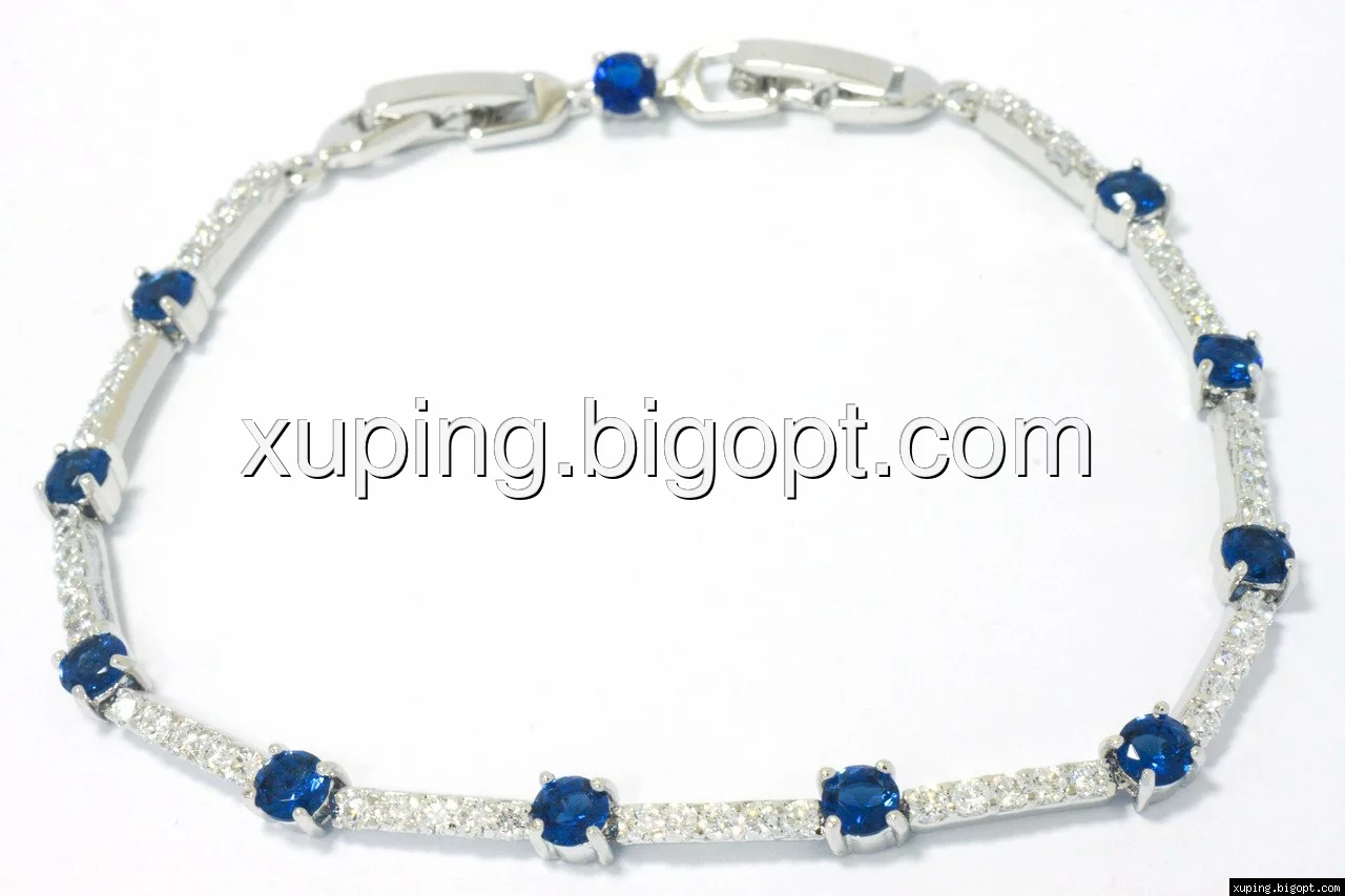 Браслет Дорожка циркония, Синий, р,19,5, р.20,5