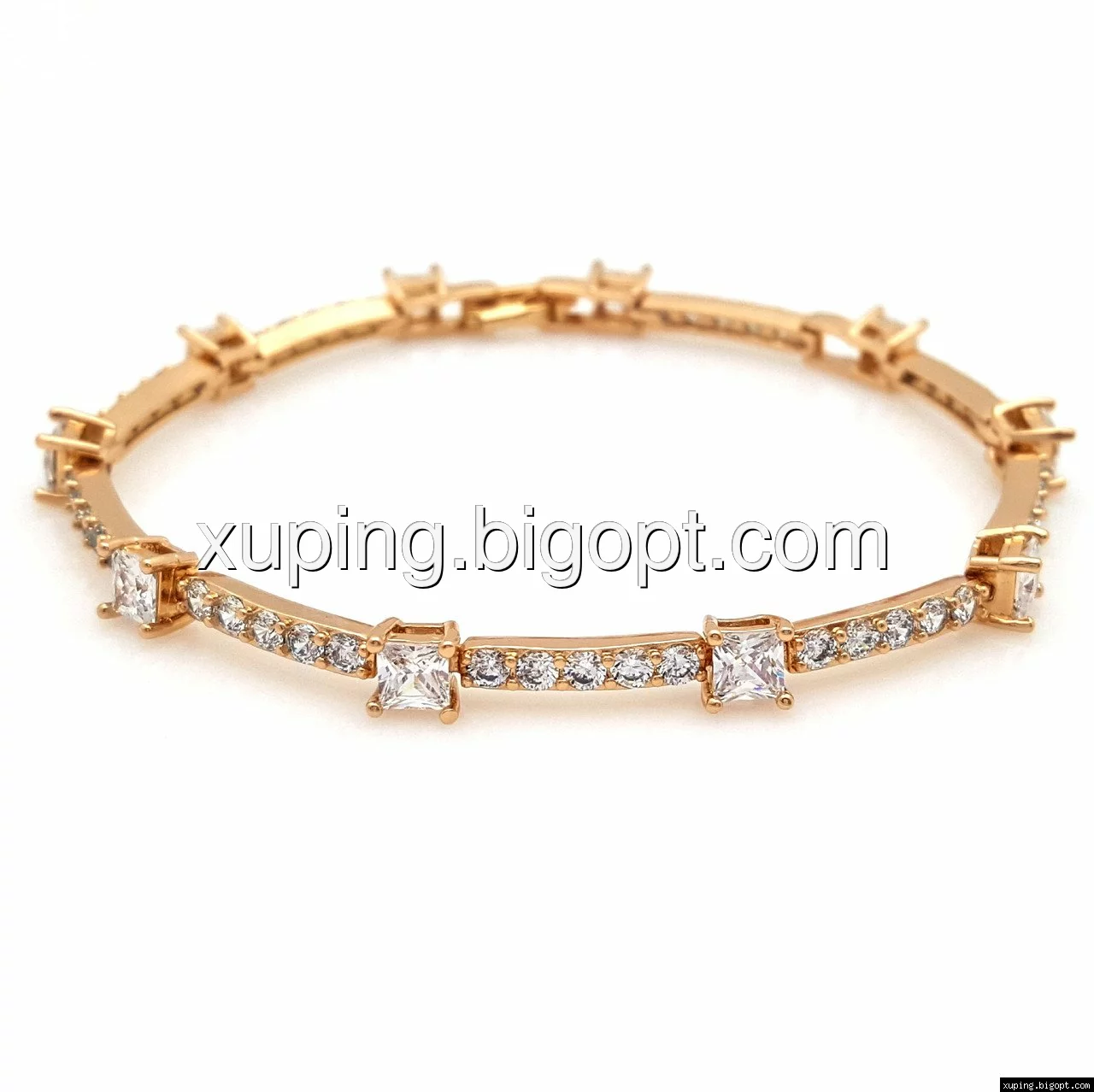 Браслет выполнен из медицинского сплава, который  изготовляется на основе латуни. Сверху бижутерия покрыта позолотой  для того чтобы придать ей насыщенный цвет, яркий блеск и максимальное сходство с золотом. Кроме того, в качестве декора мастера используют цирконий, который крепится при помощи клапанов. Как известно этот камень широко применяется в ювелирном искусстве, так как он обладает восхитительным блеском и прочностью. Данная бижутерия представлена заводом-производителем марки «Xuping» – все изделия оригинальны и имеют одинаково высокое качество.