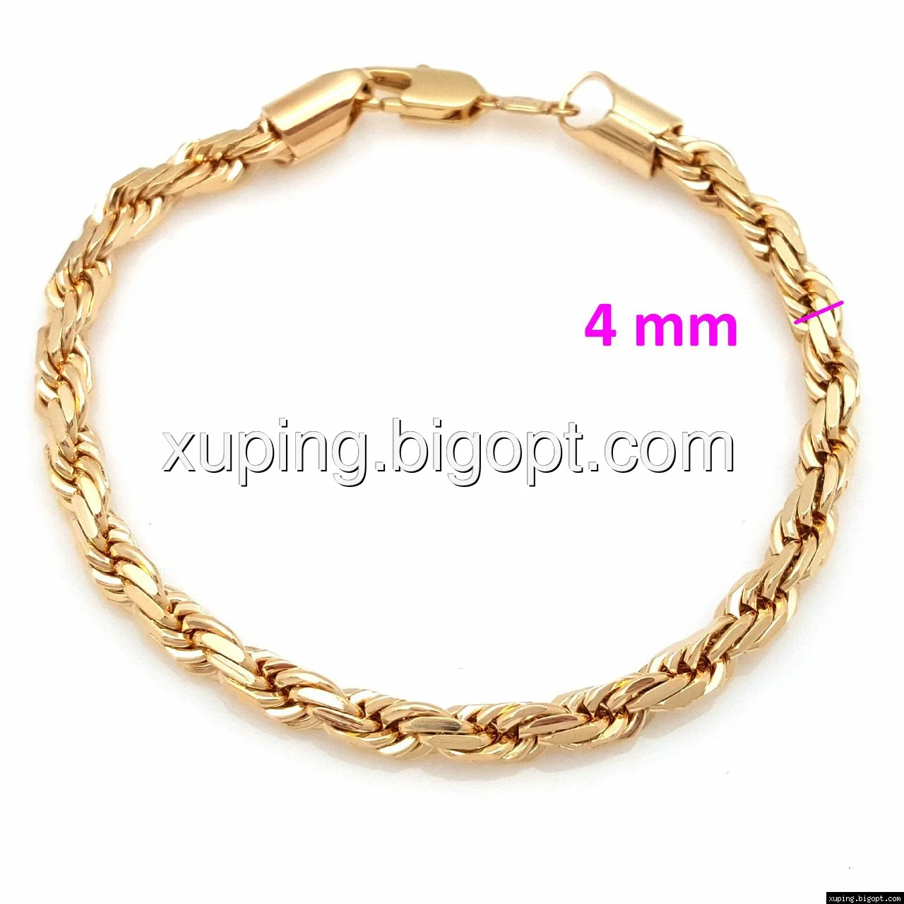Браслет выполнен из медицинского сплава, который  изготовляется на основе латуни. Сверху бижутерия покрыта позолотой  для того чтобы придать ей насыщенный цвет, яркий блеск и максимальное сходство с золотом. Кроме того, в качестве декора мастера используют цирконий, который крепится при помощи клапанов. Как известно этот камень широко применяется в ювелирном искусстве, так как он обладает восхитительным блеском и прочностью. Данная бижутерия представлена заводом-производителем марки «Xuping» – все изделия оригинальны и имеют одинаково высокое качество.