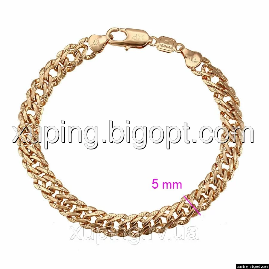 Браслет выполнен из медицинского сплава, который  изготовляется на основе латуни. Сверху бижутерия покрыта позолотой  для того чтобы придать ей насыщенный цвет, яркий блеск и максимальное сходство с золотом. Кроме того, в качестве декора мастера используют цирконий, который крепится при помощи крапанов. Как известно этот камень широко применяется в ювелирном искусстве, так как он обладает восхитительным блеском и прочностью. Данная бижутерия представлена заводом-производителем марки «Xuping» – все изделия оригинальны и имеют одинаково высокое качество.