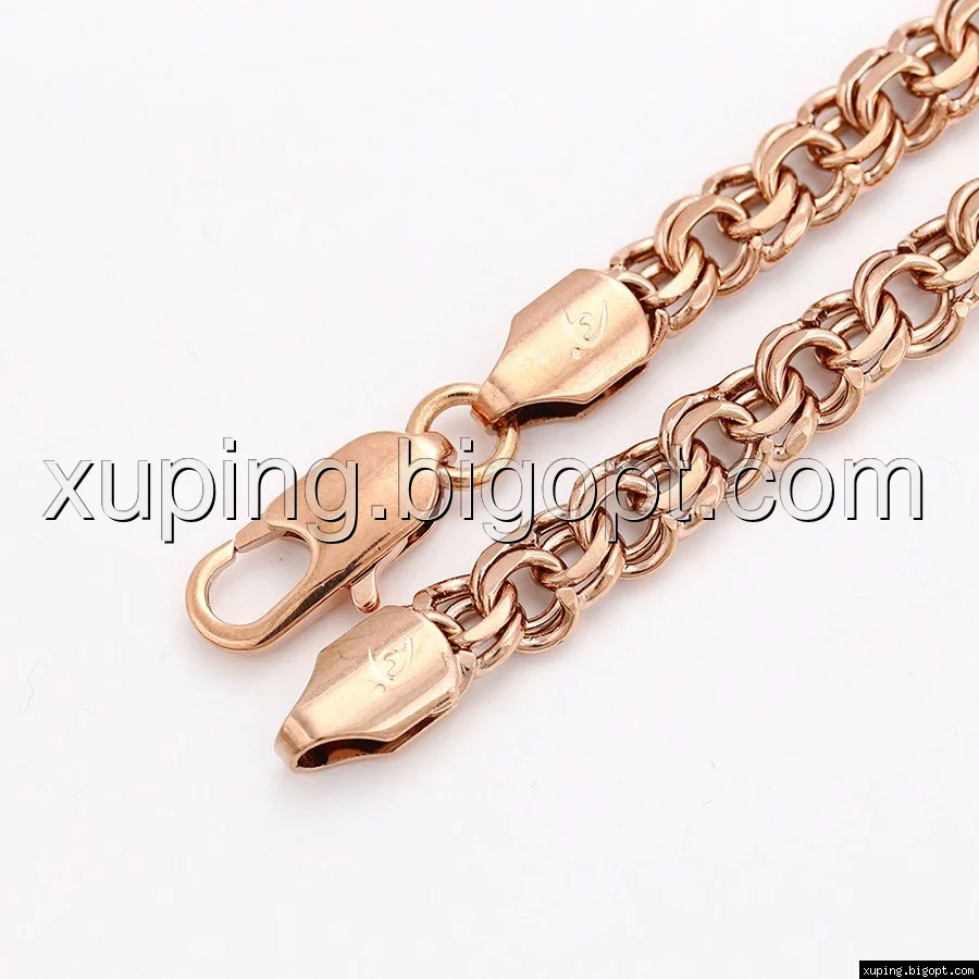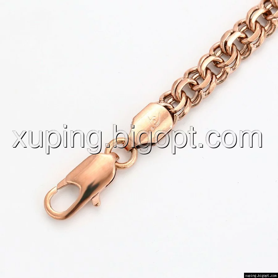 Браслет выполнен из медицинского сплава, который изготовляется на основе латуни. Сверху бижутерия покрыта позолотой для того чтобы придать ей насыщенный цвет, яркий блеск и максимальное сходство с золотом. Кроме того, в качестве декора мастера используют цирконий, который крепится при помощи крапанов. Как известно этот камень широко применяется в ювелирном искусстве, так как он обладает восхитительным блеском и прочностью. Данная бижутерия представлена заводом-производителем марки «Xuping» – все изделия оригинальны и имеют одинаково высокое качество.
