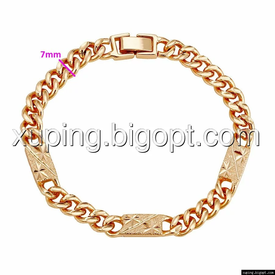 Браслет выполнен из медицинского сплава на основе латуни с добавлением легирующих елементов, с целью улучшения каких-либо его свойств, например коррозионной стойкости или прочности. Такой сплав не вызывает аллергии, не вступает в реакцию с потом человека, не меняет свои свойства под воздействием соленой воды и солнца. Поверхность изделия покрыта золотом 18 карата.