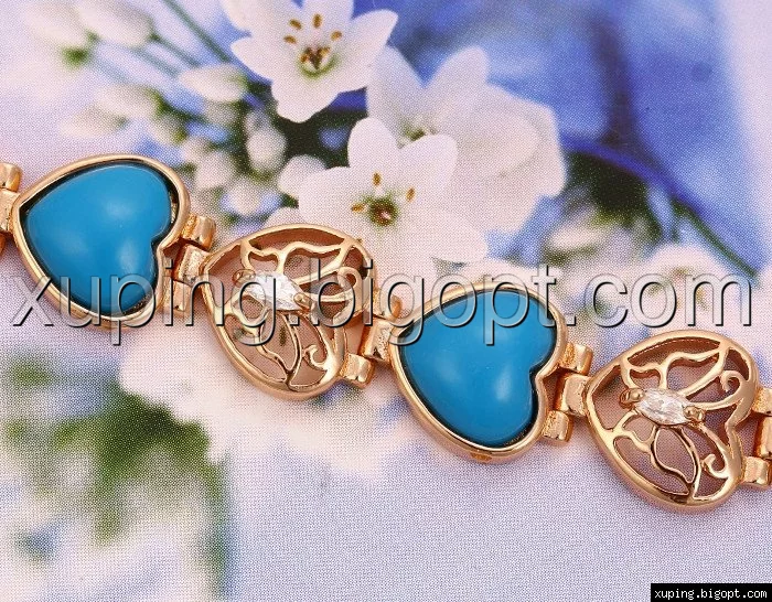 Браслет позолота, Бирюзовое Сердце, р.18.5