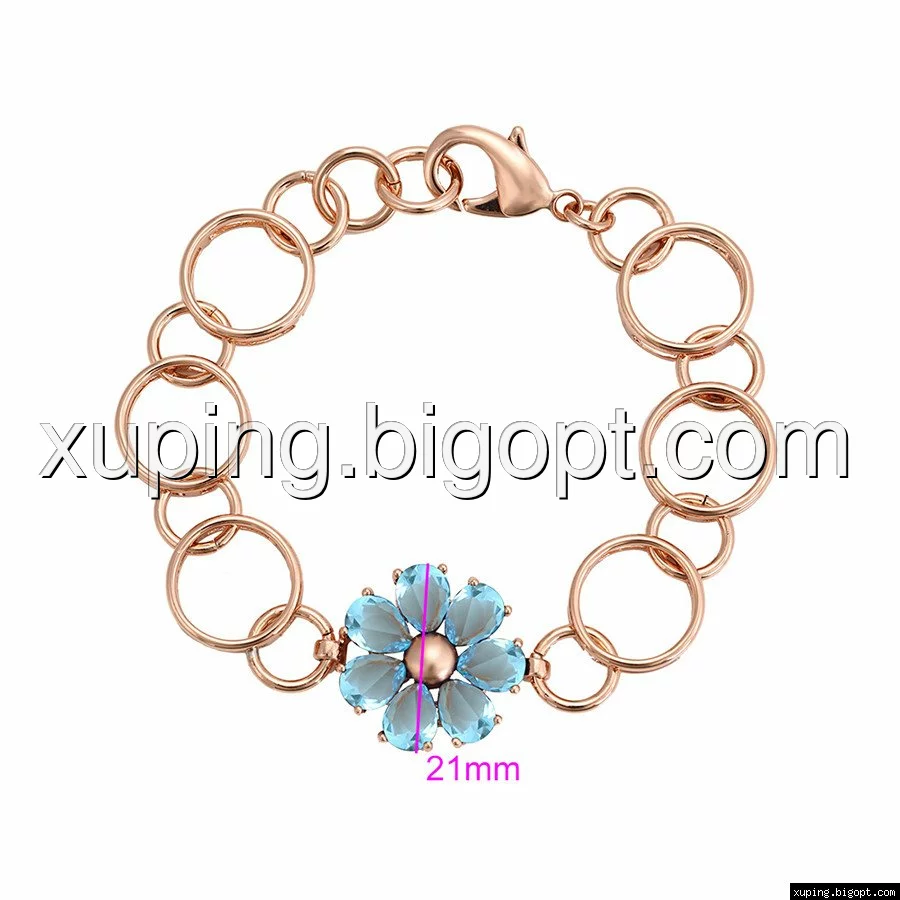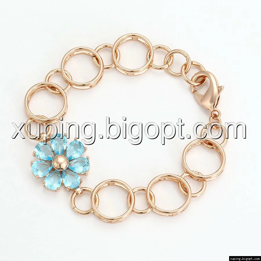 Браслет выполнен из медицинского сплава, который изготовляется на основе латуни. Сверху бижутерия покрыта позолотой для того чтобы придать ей насыщенный цвет, яркий блеск и максимальное сходство с золотом. Кроме того, в качестве декора мастера используют цирконий, который крепится при помощи крапанов. Как известно этот камень широко применяется в ювелирном искусстве, так как он обладает восхитительным блеском и прочностью. Данная бижутерия представлена заводом-производителем марки «Xuping» – все изделия оригинальны и имеют одинаково высокое качество.