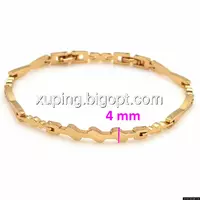 Браслет выполнен из медицинского сплава, который  изготовляется на основе латуни. Сверху бижутерия покрыта позолотой  для того чтобы придать ей насыщенный цвет, яркий блеск и максимальное сходство с золотом. Кроме того, в качестве декора мастера используют цирконий, который крепится при помощи клапанов. Как известно этот камень широко применяется в ювелирном искусстве, так как он обладает восхитительным блеском и прочностью. Данная бижутерия представлена заводом-производителем марки «Xuping» – все изделия оригинальны и имеют одинаково высокое качество.