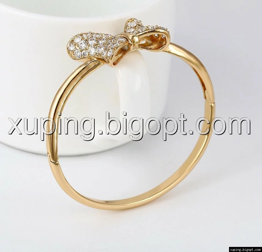 Браслет позолоченный, Бант с россыпью циркония