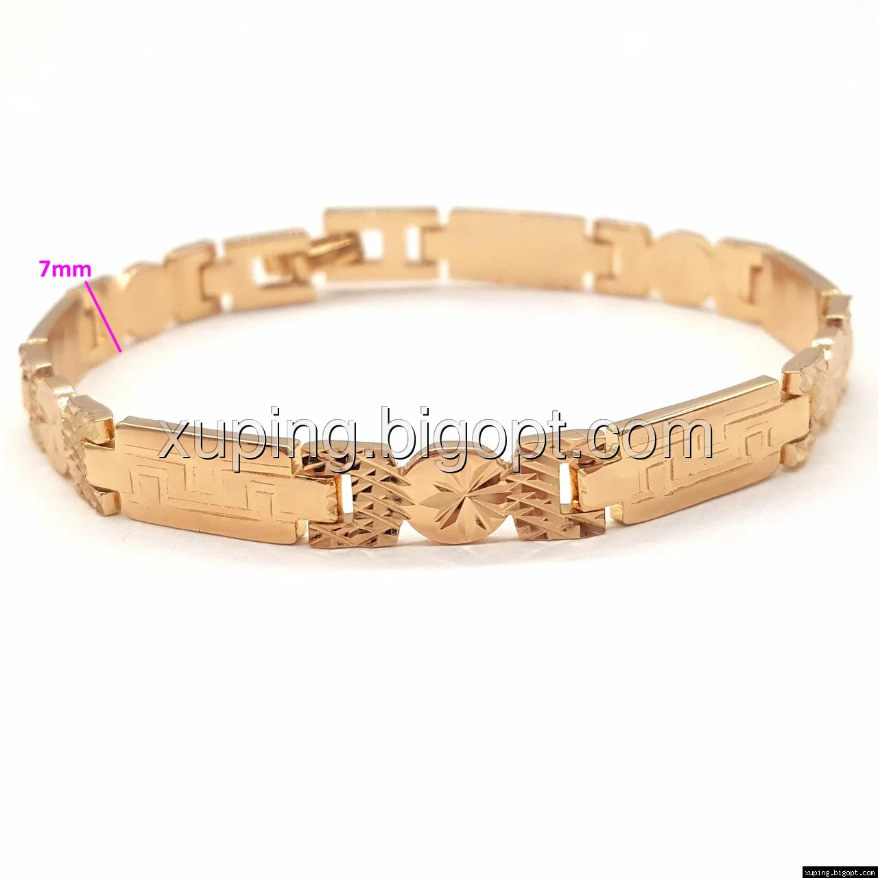Браслет выполнен из медицинского сплава, который  изготовляется на основе латуни. Сверху бижутерия покрыта позолотой  для того чтобы придать ей насыщенный цвет, яркий блеск и максимальное сходство с золотом. Кроме того, в качестве декора мастера используют цирконий, который крепится при помощи крапанов. Как известно этот камень широко применяется в ювелирном искусстве, так как он обладает восхитительным блеском и прочностью. Данная бижутерия представлена заводом-производителем марки «Xuping» – все изделия оригинальны и имеют одинаково высокое качество.