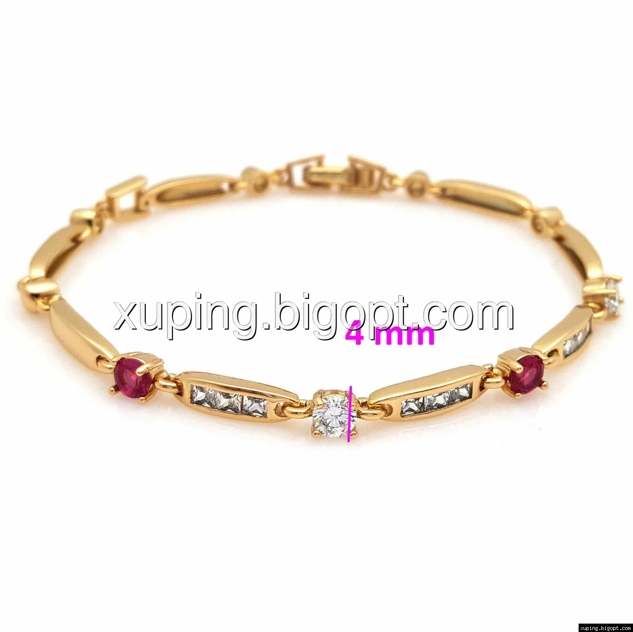 Браслет выполнен из медицинского сплава, который  изготовляется на основе латуни. Сверху бижутерия покрыта позолотой  для того чтобы придать ей насыщенный цвет, яркий блеск и максимальное сходство с золотом. Кроме того, в качестве декора мастера используют цирконий, который крепится при помощи клапанов. Как известно этот камень широко применяется в ювелирном искусстве, так как он обладает восхитительным блеском и прочностью. Данная бижутерия представлена заводом-производителем марки «Xuping» – все изделия оригинальны и имеют одинаково высокое качество.