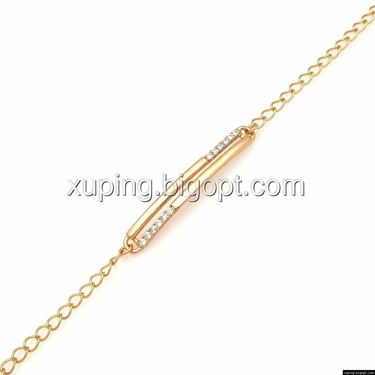Браслет выполнен из медицинского сплава, который  изготовляется на основе латуни. Сверху бижутерия покрыта позолотой  для того чтобы придать ей насыщенный цвет, яркий блеск и максимальное сходство с золотом. Кроме того, в качестве декора мастера используют цирконий, который крепится при помощи клапанов. Как известно этот камень широко применяется в ювелирном искусстве, так как он обладает восхитительным блеском и прочностью. Данная бижутерия представлена заводом-производителем марки «Xuping» – все изделия оригинальны и имеют одинаково высокое качество.