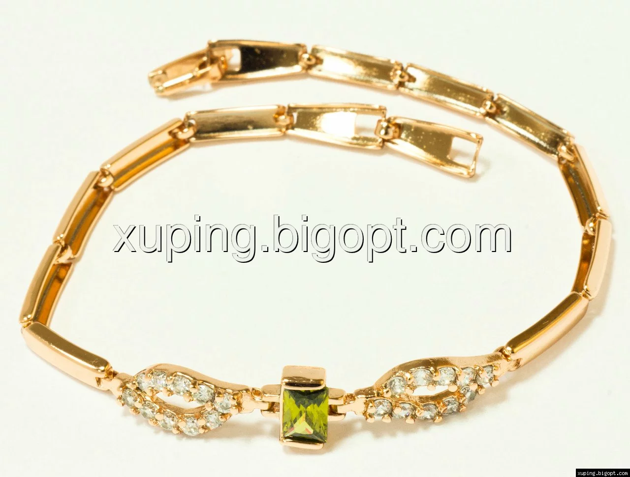 Браслет позолоченный с оливковым цирконием , р.18, р.19