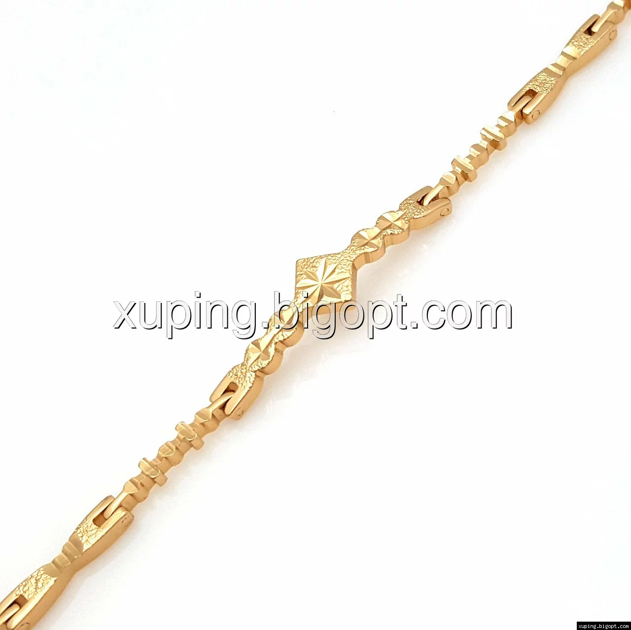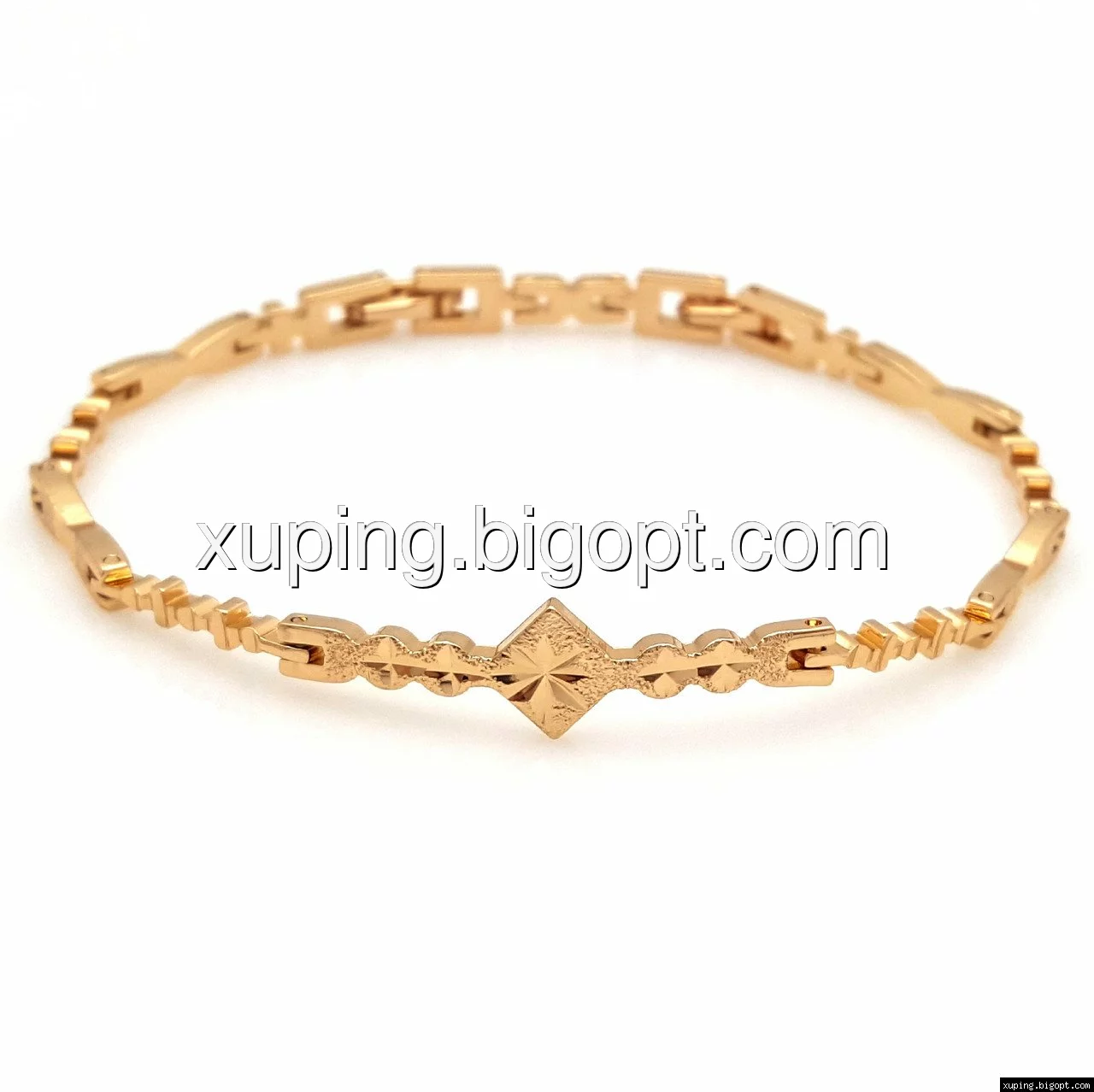 Браслет выполнен из медицинского сплава, который  изготовляется на основе латуни. Сверху бижутерия покрыта позолотой  для того чтобы придать ей насыщенный цвет, яркий блеск и максимальное сходство с золотом. Кроме того, в качестве декора мастера используют цирконий, который крепится при помощи клапанов. Как известно этот камень широко применяется в ювелирном искусстве, так как он обладает восхитительным блеском и прочностью. Данная бижутерия представлена заводом-производителем марки «Xuping» – все изделия оригинальны и имеют одинаково высокое качество.