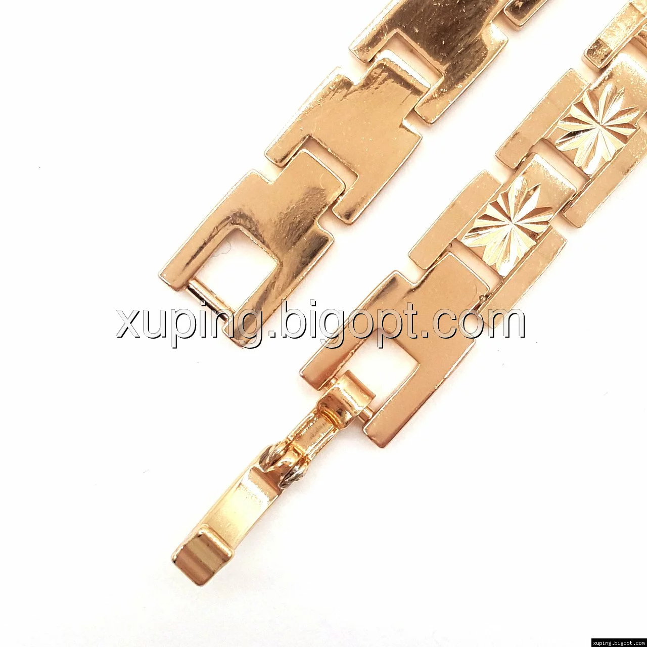Браслет выполнен из медицинского сплава, который  изготовляется на основе латуни. Сверху бижутерия покрыта позолотой  для того чтобы придать ей насыщенный цвет, яркий блеск и максимальное сходство с золотом. Кроме того, в качестве декора мастера используют цирконий, который крепится при помощи крапанов. Как известно этот камень широко применяется в ювелирном искусстве, так как он обладает восхитительным блеском и прочностью. Данная бижутерия представлена заводом-производителем марки «Xuping» – все изделия оригинальны и имеют одинаково высокое качество.