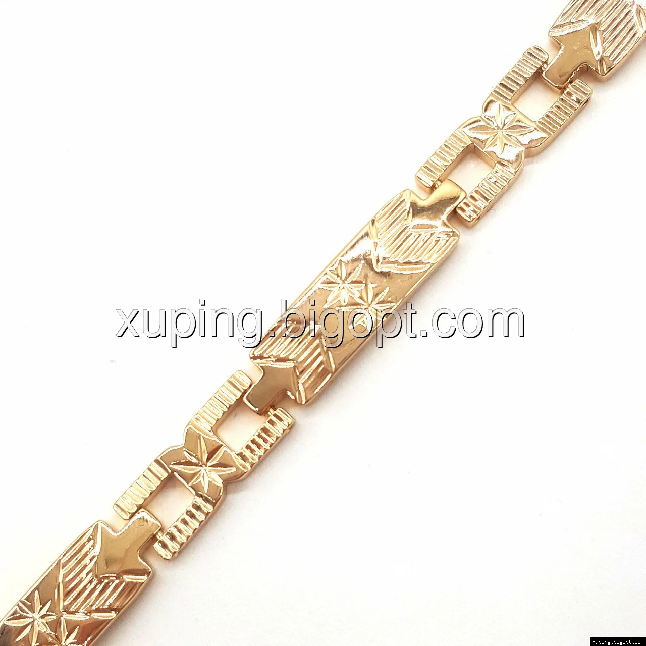 Браслет выполнен из медицинского сплава, который  изготовляется на основе латуни. Сверху бижутерия покрыта позолотой  для того чтобы придать ей насыщенный цвет, яркий блеск и максимальное сходство с золотом. Кроме того, в качестве декора мастера используют цирконий, который крепится при помощи крапанов. Как известно этот камень широко применяется в ювелирном искусстве, так как он обладает восхитительным блеском и прочностью. Данная бижутерия представлена заводом-производителем марки «Xuping» – все изделия оригинальны и имеют одинаково высокое качество.
