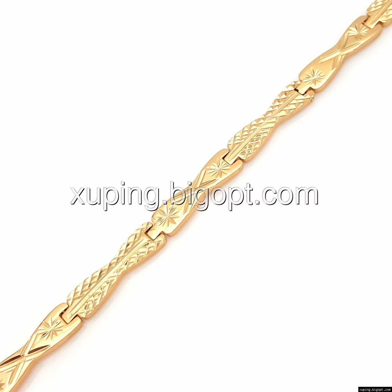 Браслет выполнен из медицинского сплава, который  изготовляется на основе латуни. Сверху бижутерия покрыта позолотой  для того чтобы придать ей насыщенный цвет, яркий блеск и максимальное сходство с золотом. Кроме того, в качестве декора мастера используют цирконий, который крепится при помощи крапанов. Как известно этот камень широко применяется в ювелирном искусстве, так как он обладает восхитительным блеском и прочностью. Данная бижутерия представлена заводом-производителем марки «Xuping» – все изделия оригинальны и имеют одинаково высокое качество.