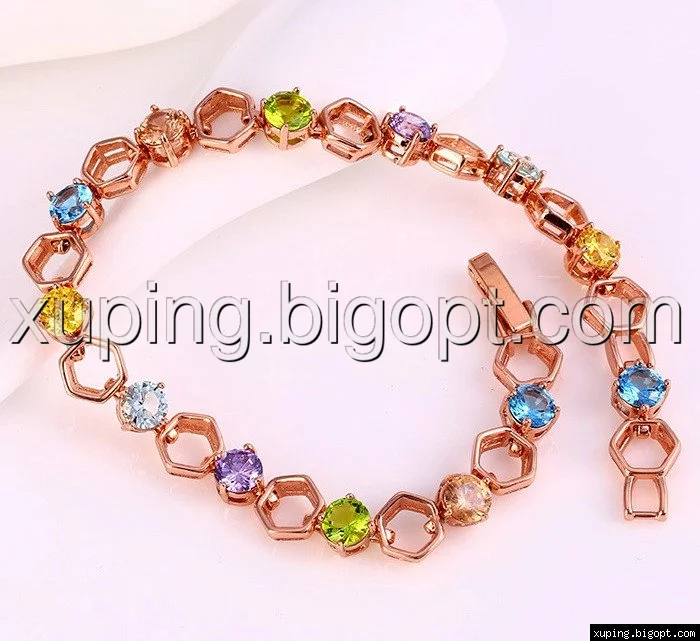 Браслет позолоченный с разноцветным цирконием, р.18, р.20