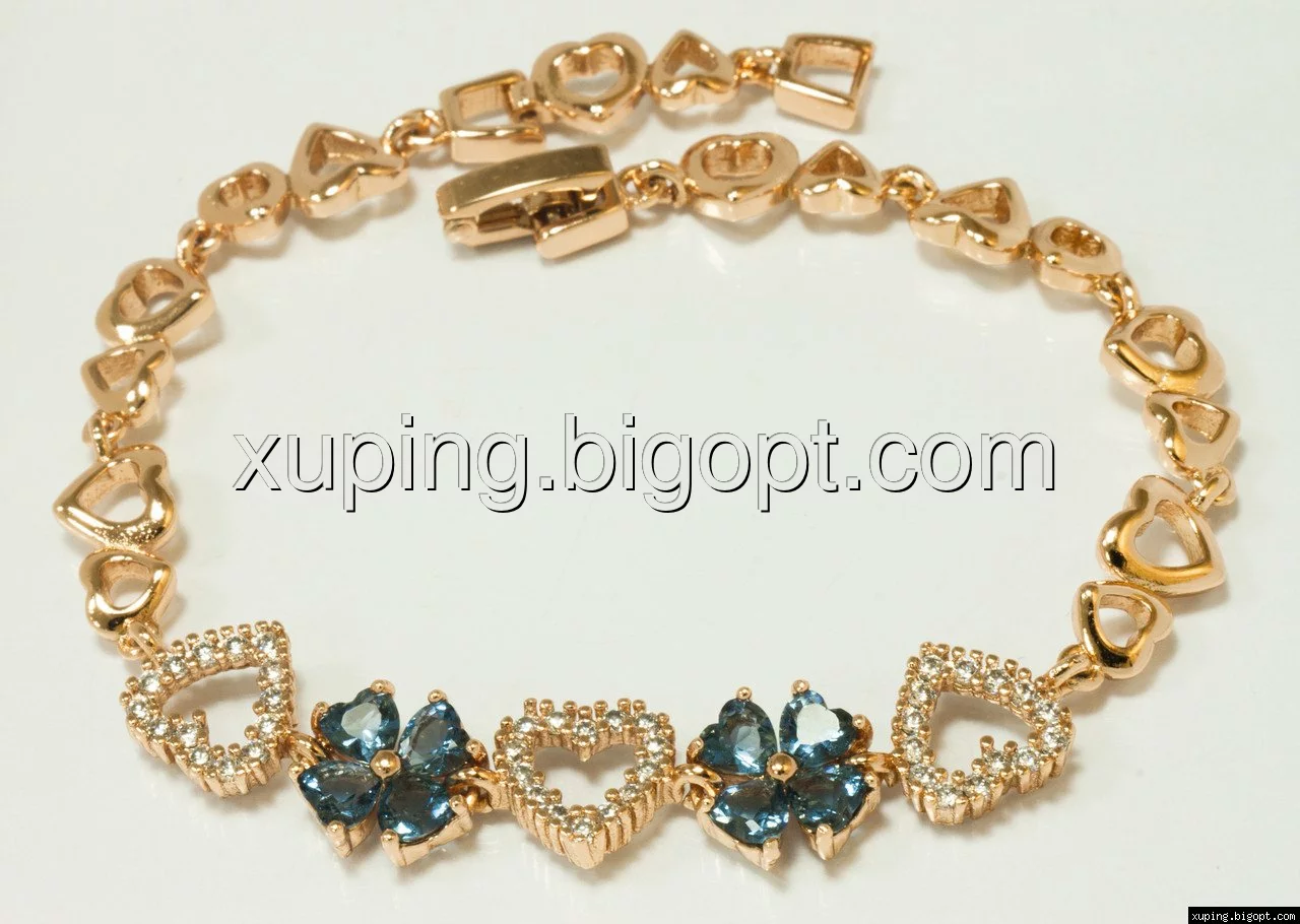 Браслет позолоченный, синий цветочек, р.17,5, р.19,5